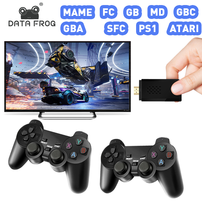 With upgraded GB2 CPU chip, the game stick 4K TV games console is built-in more than 9 Emulators, compatible for MAME, PS1, GB, GBA, GBC, MD, SFC, FC and ATARI format games, which you can download and save at its Memory Card;