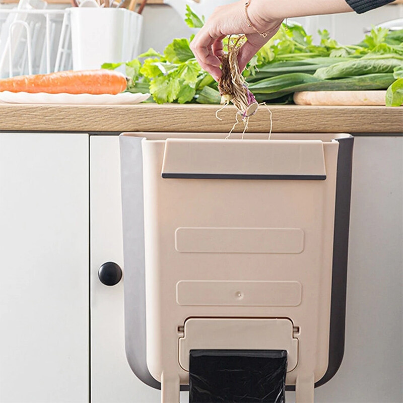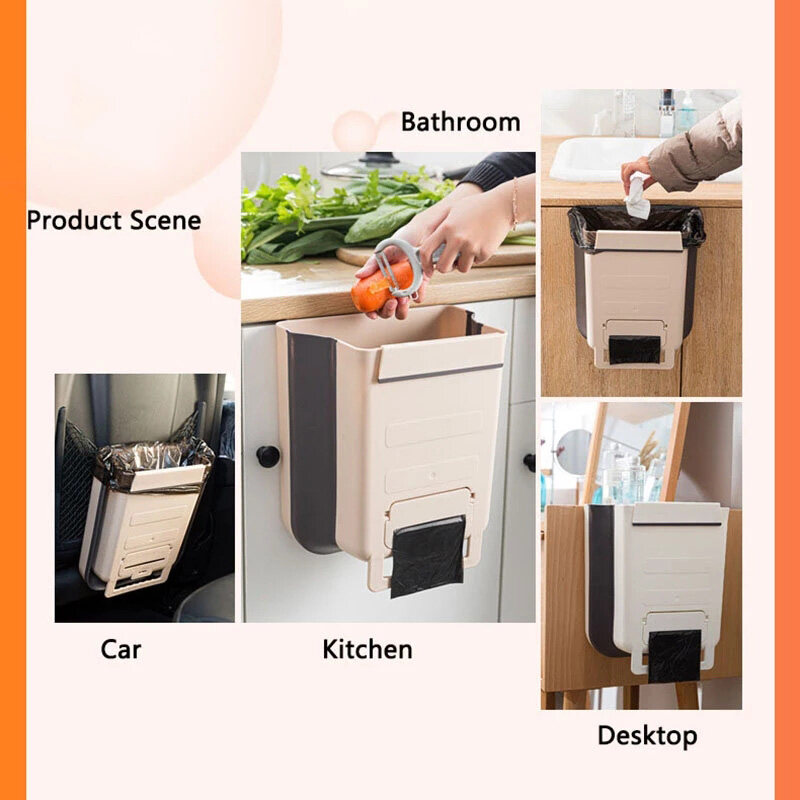 1PCS Multifunction Wall Mounted Folding Waste Bin Kitchen Cabinet Door Hanging Trash Bin Garbage Car Trash Can Wall Mounted Foldable Cleaning Towel Holder Rack Shelf