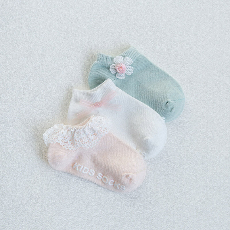 3 Pairs/Lot Newborn Baby Socks Lace Flower Wings Socks Anti Slip Floor Socks