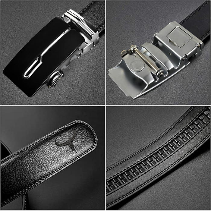 Men 3.5cm Dress Belts, COWATHER Ratchet Genuine Leather Casual Belts Slide Casual Classic Leather Belt for Men with Automatic Lock Buckle. Size Customized