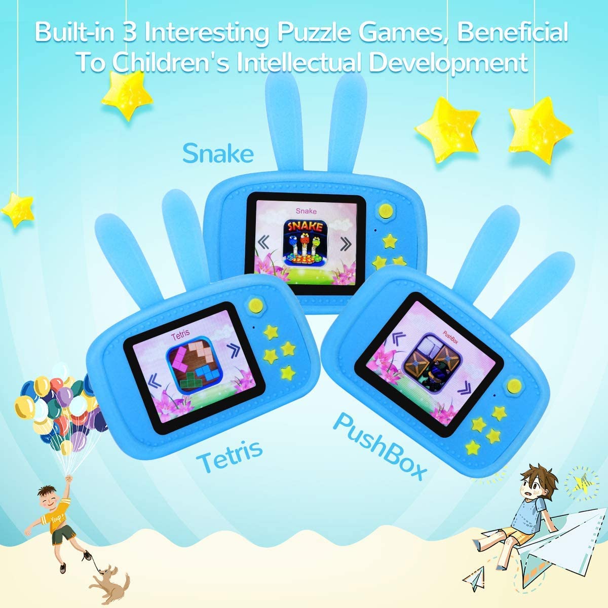 • 【Best Gift Toys for Kids 】Built-in puzzle games like Tetris and Snake, will bring kids more pleasure during the travel. The Feature-rich and high cost-efficiency makes this smart digital toy camera a perfect gift for kids on birthday, Christmas and New Year.
