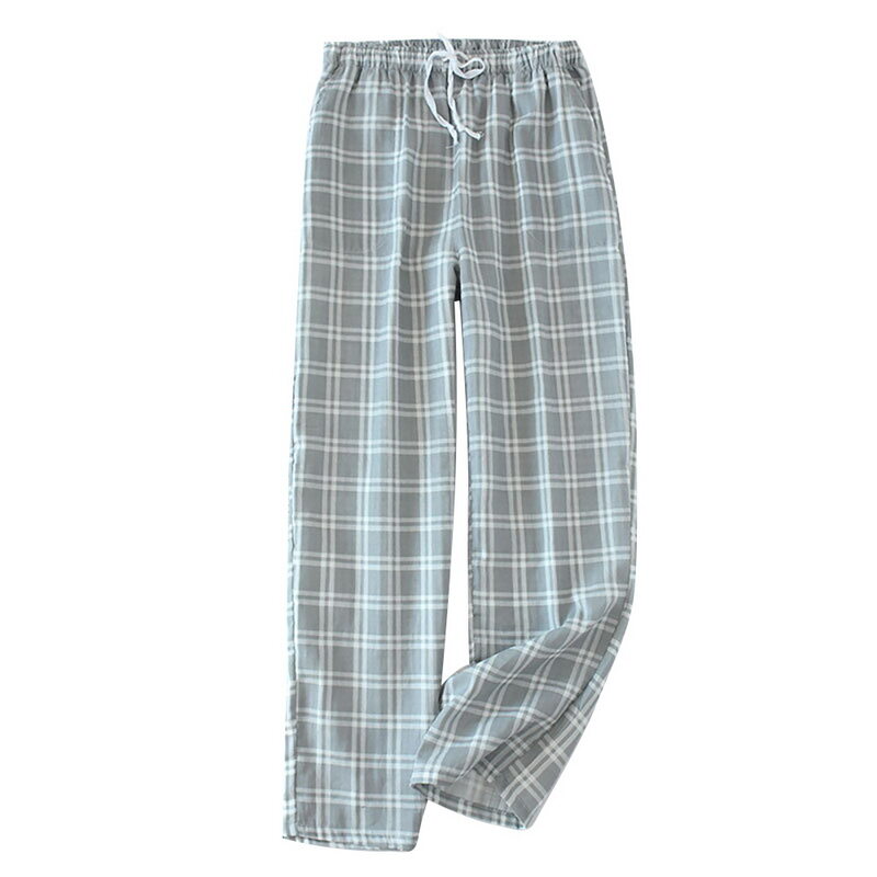 Cyprus Men's Cotton Gauze Trousers Plaid Knitted Sleep Shorts Pants For Women Pajamas Pants Bottoms Sleepwear Pajama Short Pijama Hombre