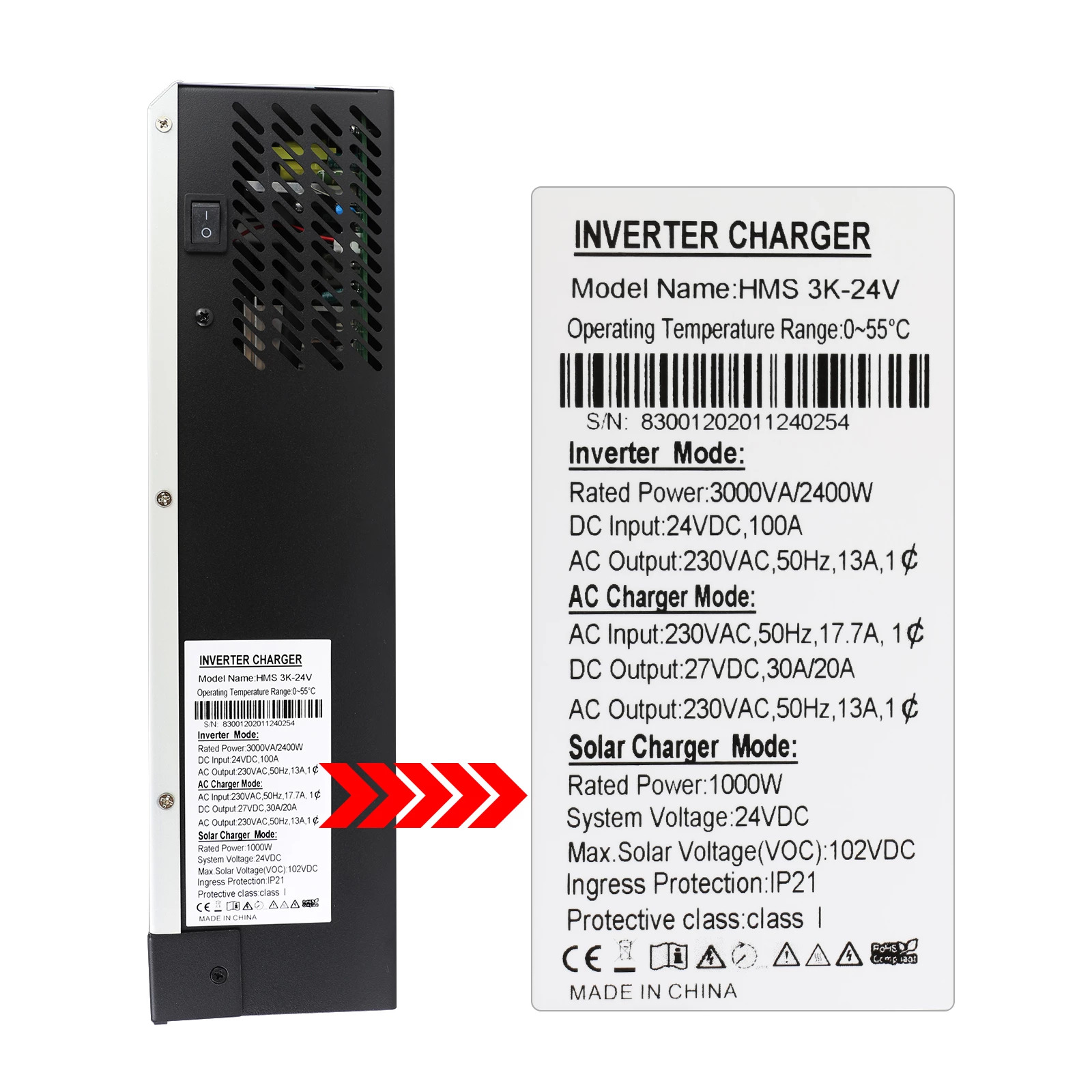 PowMr 3KW PWM Hybrid Solar Inverter 220V 50A Pure Sine Wave Inverter MAX 80V PV Input HPS-3K-24V