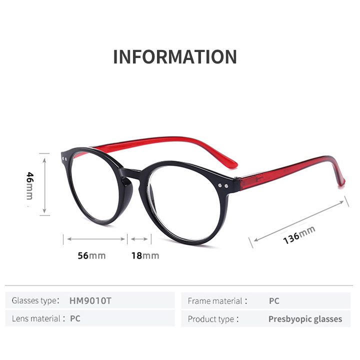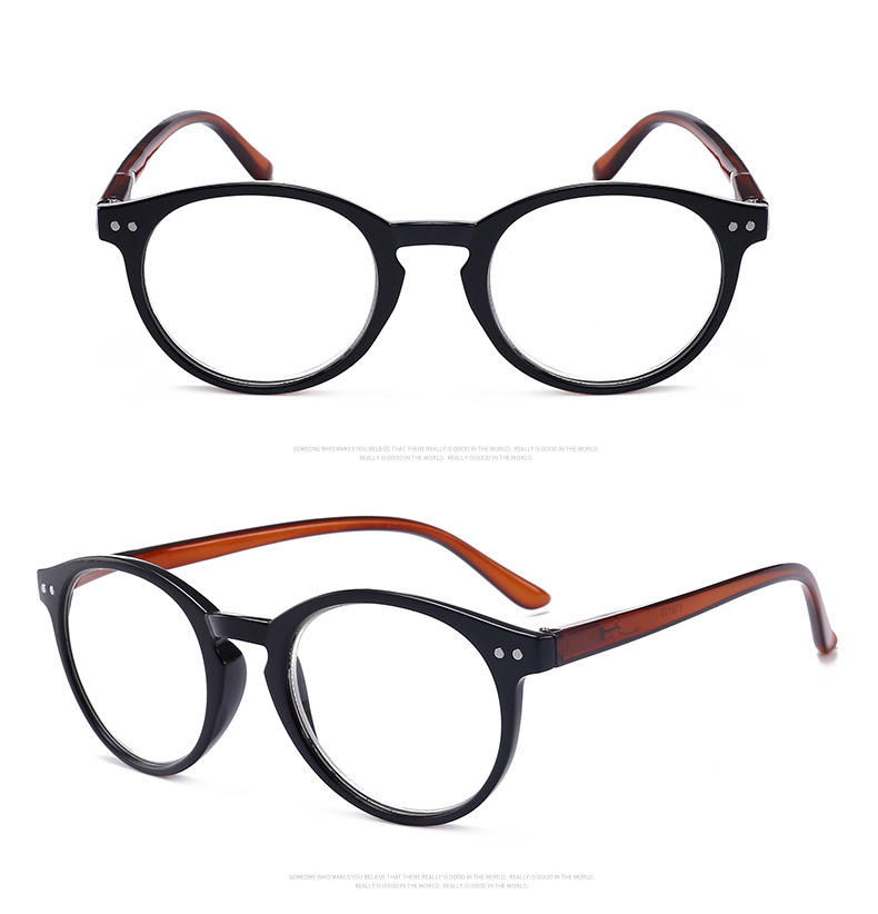 Reading glasses made of PC frame, AC lens. Round frame, integrated frame, comfortable nose pads, spring hinges. HD Vision & UV400 can restore true colors and protect eyes. Ideal gift for parents and friends. Suitable for reading. The stylish classic design is simple and young, showing a unique taste.