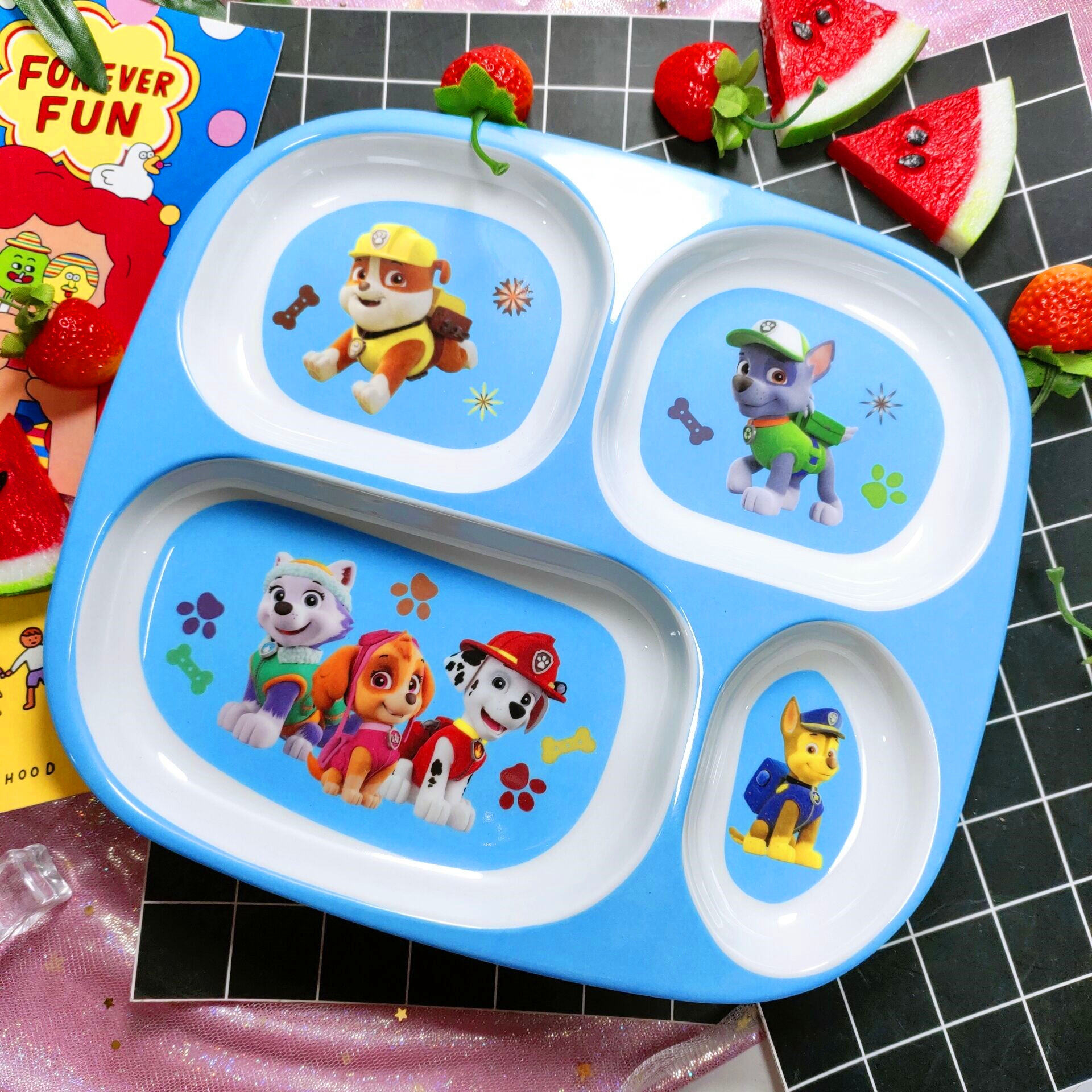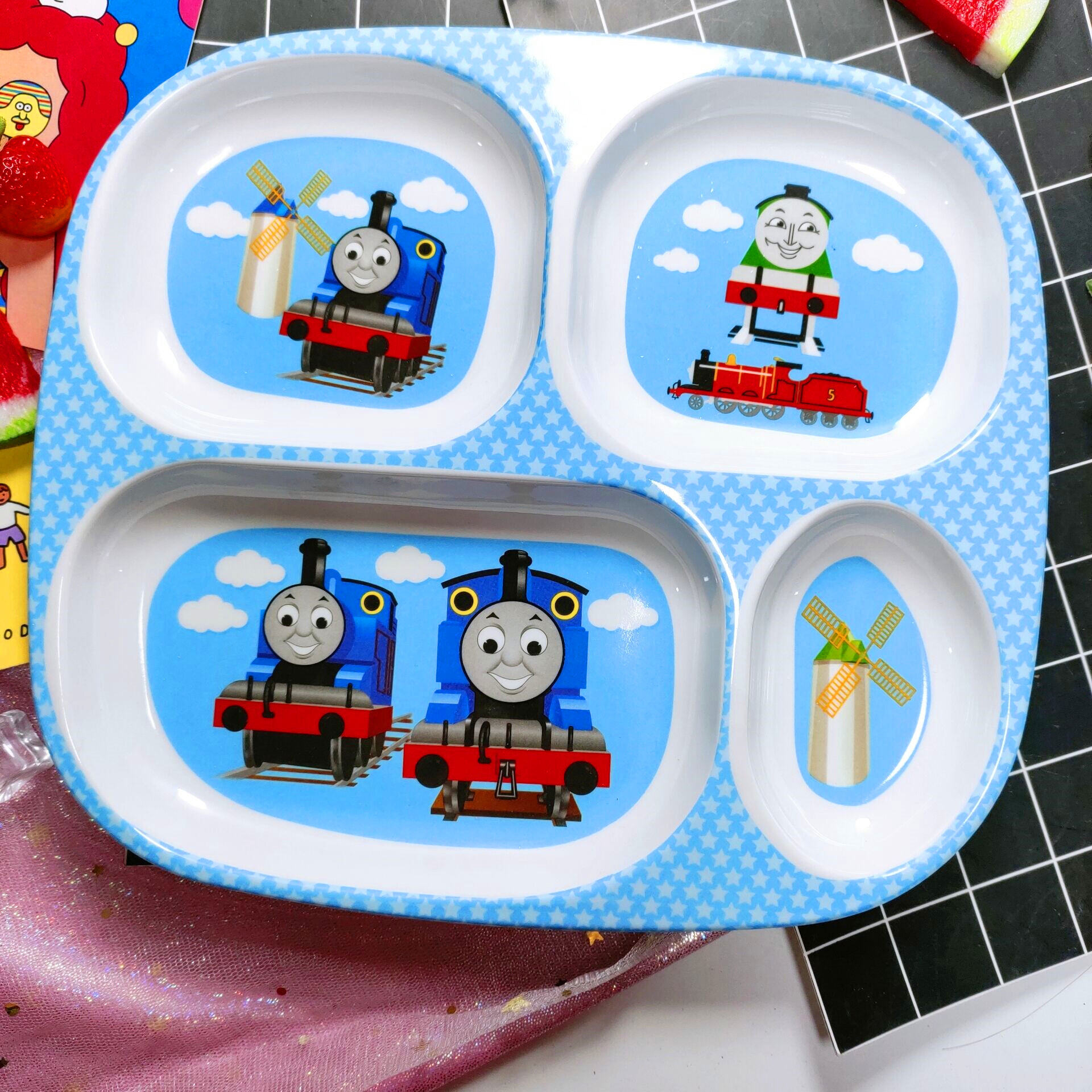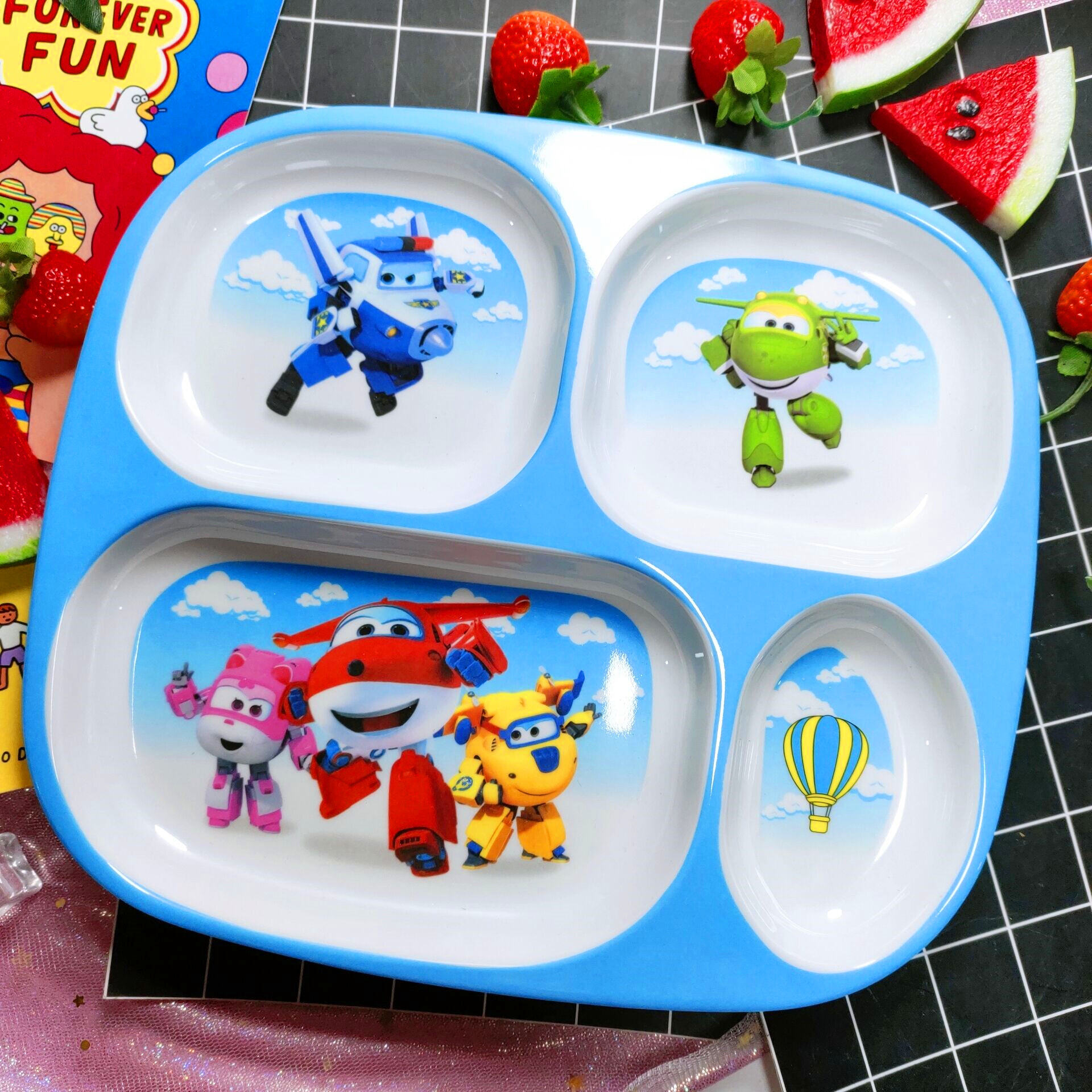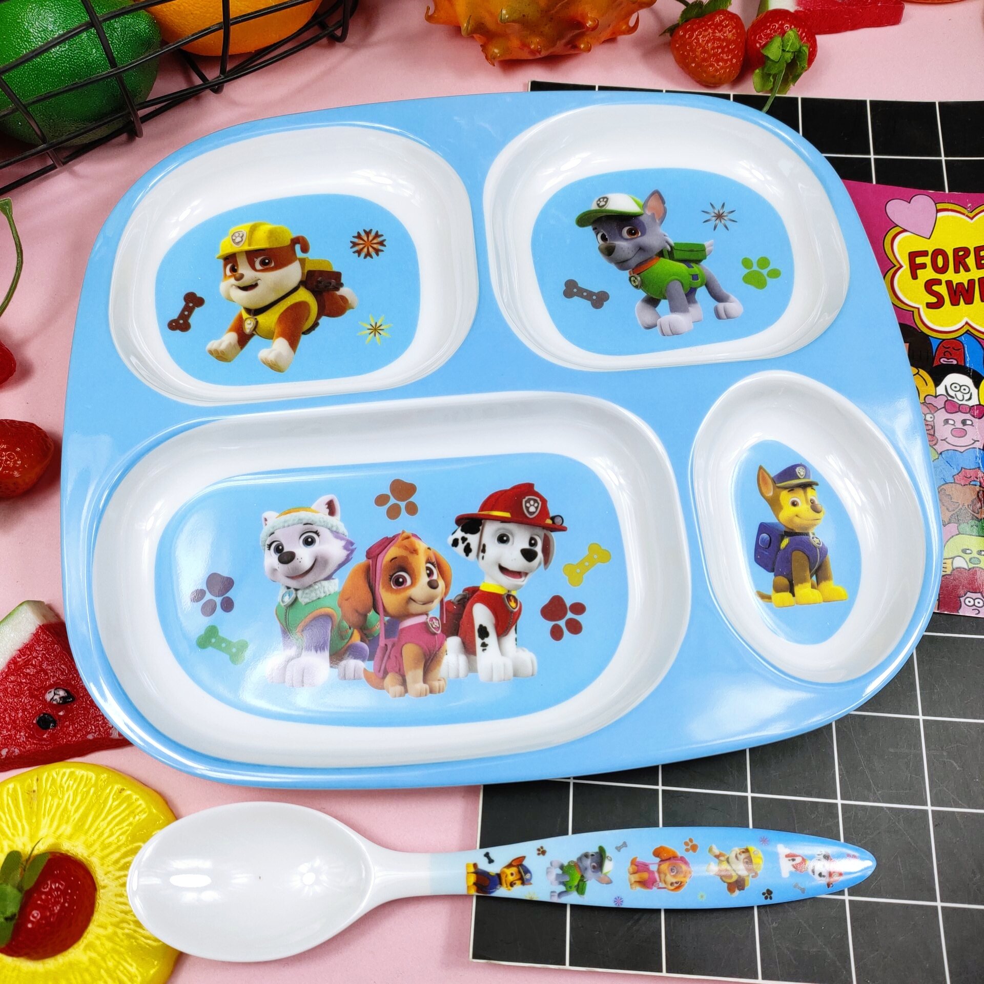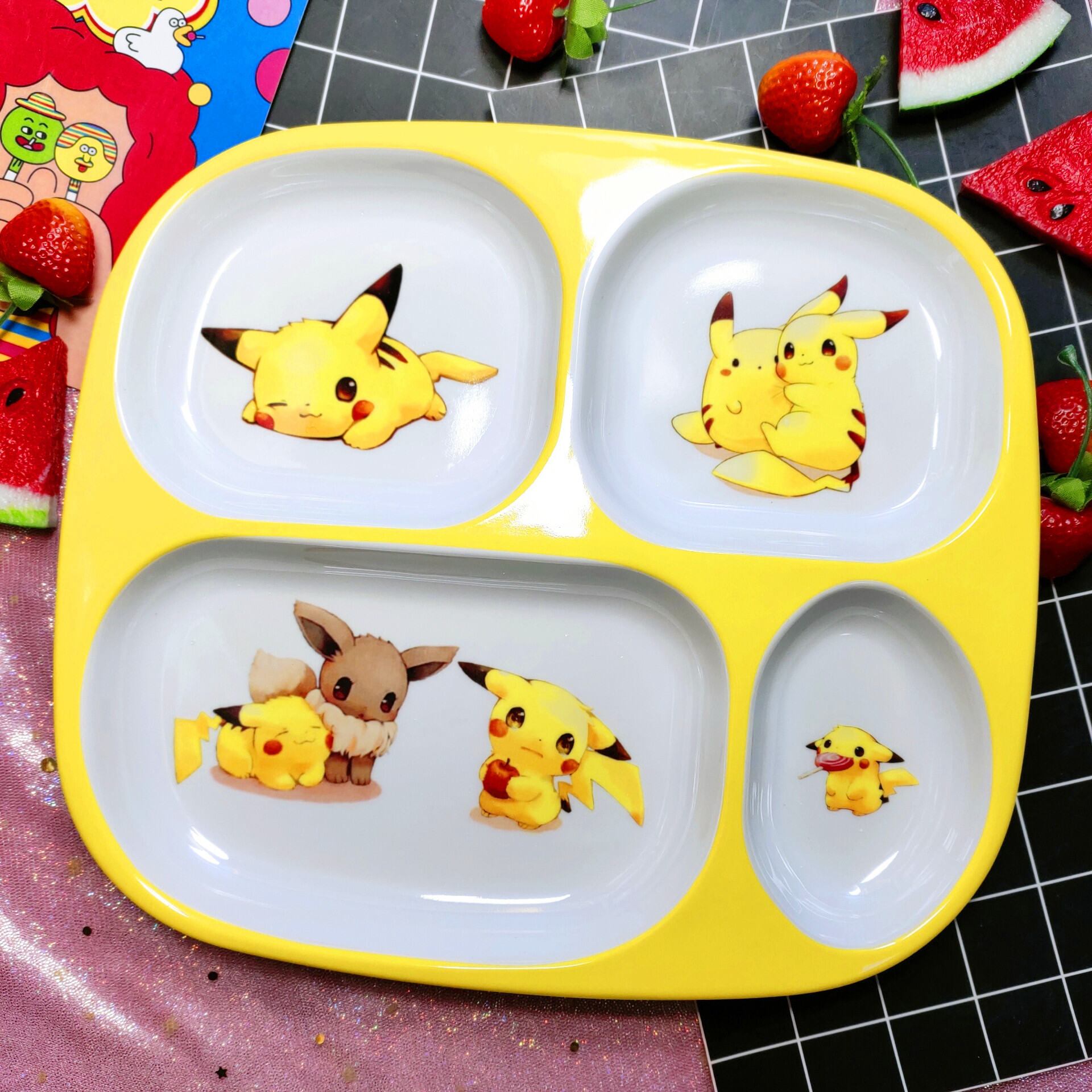 Children's Plate Cartoon Cute Baby Compartment Household Shatter-resistant Hello Kitty Plate Spoon Infant Food Supplement Learn to Eat