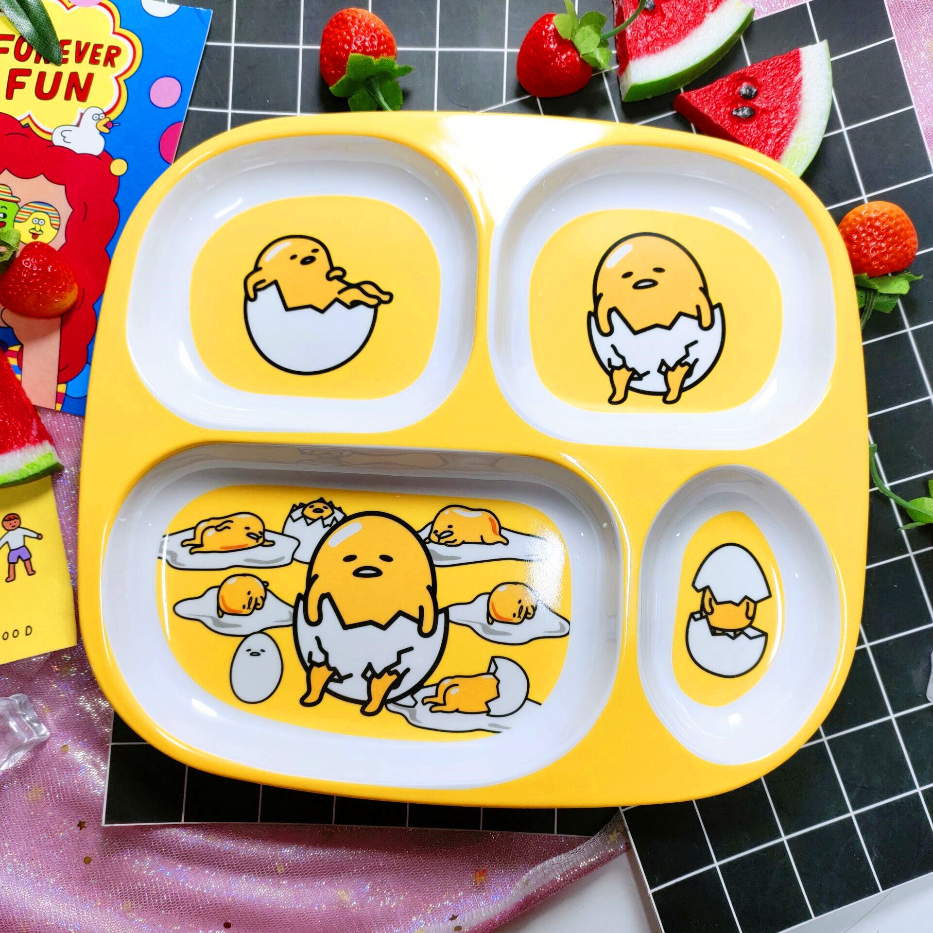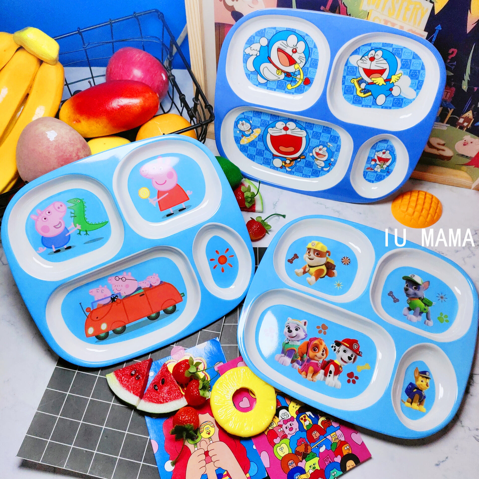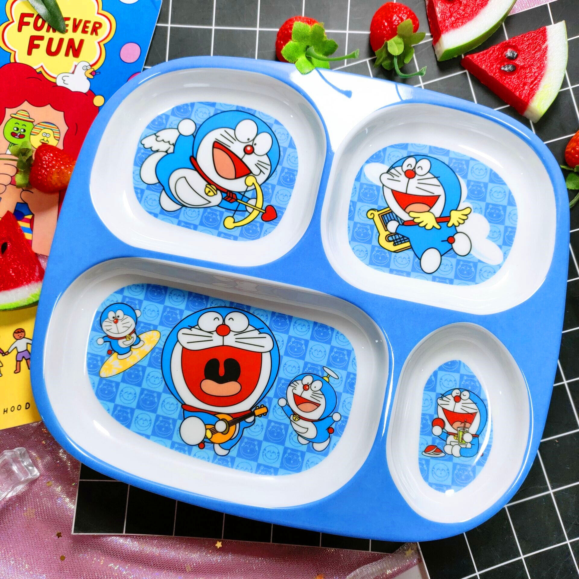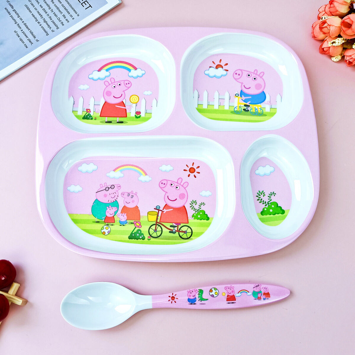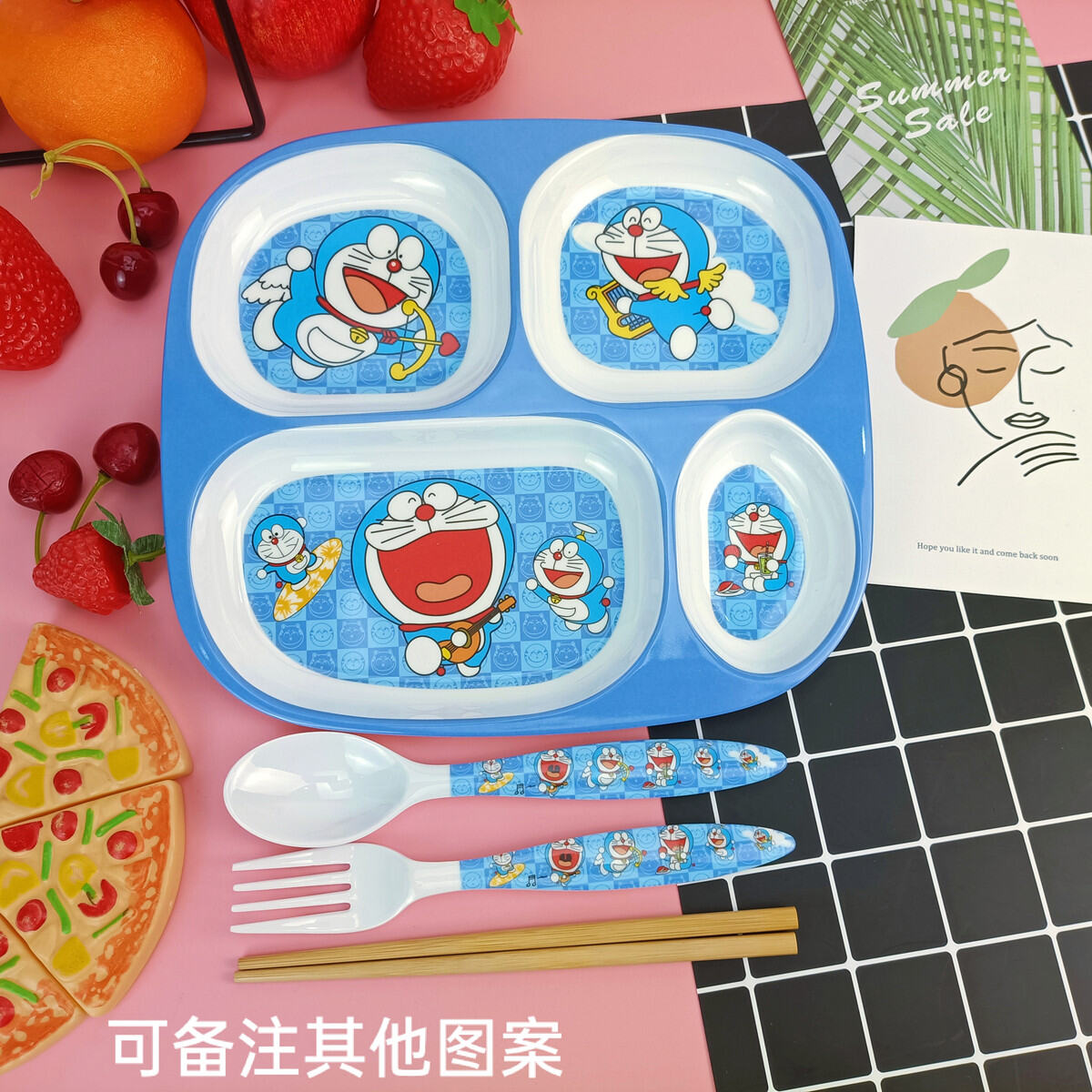 Children's Plate Cartoon Cute Baby Compartment Household Shatter-resistant Hello Kitty Plate Spoon Infant Food Supplement Learn to Eat