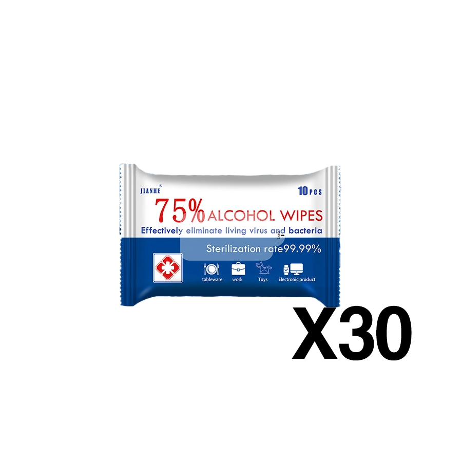 30 pack x 10 pcs 75% Alcohol Antibacterial Wipes
