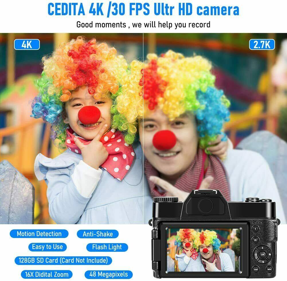 4k 30FPS Digital Camera 48MP WI-FI Camera vlog recording for YouTube 30FPS with WI-FI 16X Free Gift wide-angle lens Vlogging Camera