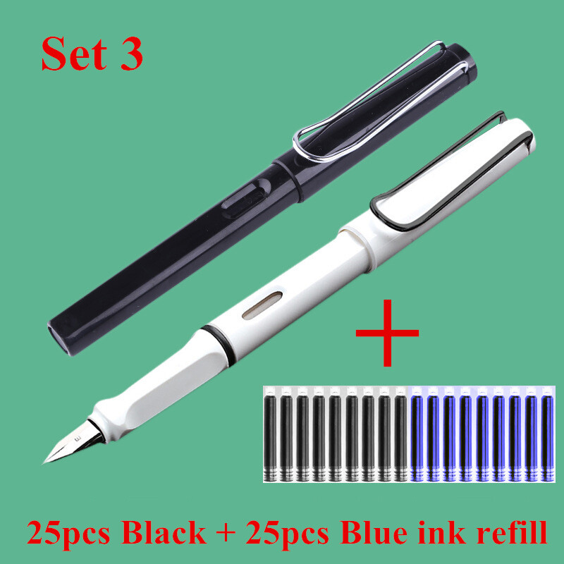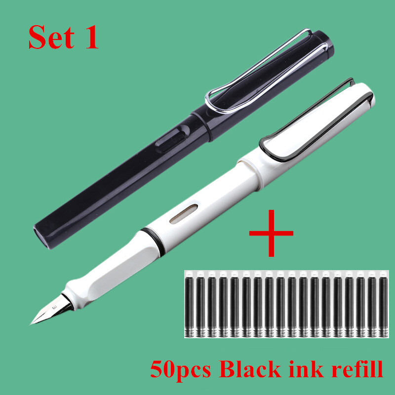 0.38mm Fountain Pen set with replaceable ink refill, 2 Pens + 50 disposable ink refills Student School&Office Stationery