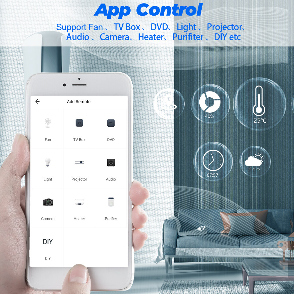 --【Infrared Remote】With this universal infrared remote , you can use your smartphone to control home appliances, such as STB (Set Top Box), TV Box, TV, Air Conditioner, Fan, DVD, etc. In addition, it also has a learning function, which can copy the button functions of the original remote to the App.