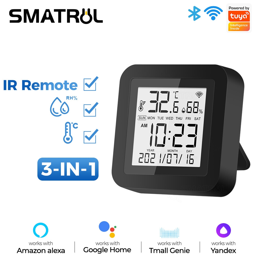 --[3 in 1] Infrared remote control + temperature + humidity Three functions are integrated together. You can remotely control these devices with a tap of your finger on the mobile app, or you can monitor temperature and humidity in real time on the app anytime, anywhere.
