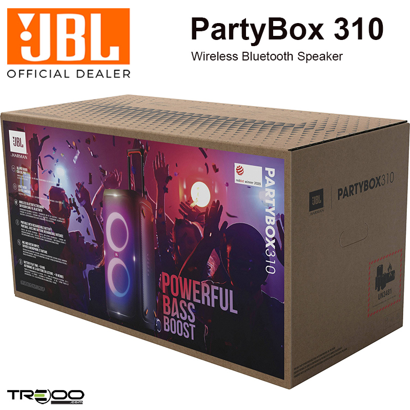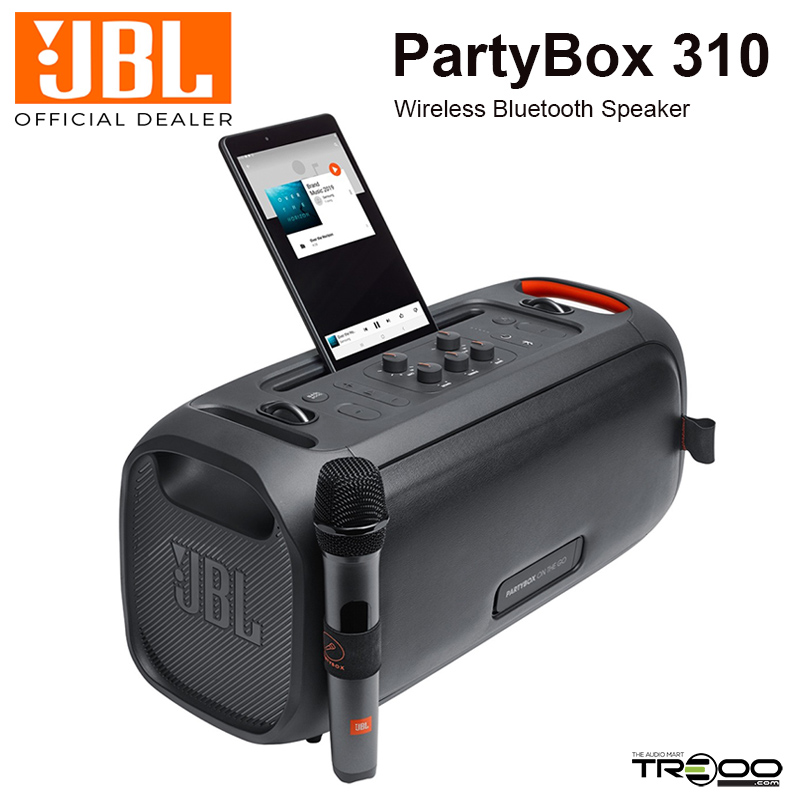 Huge sound, dazzling lights and unbelievable power set this speaker apart from the crowd. The JBL PartyBox 310 packs a full party into a transportable, splashproof sound machine like no other. Bring big party vibes with 240 watts of JBL Pro Sound and a synced light show that grooves to the beat. Plug in and keep the fun going all night or wheel over to the campfire and take advantage of its impressive 18-hour battery life. Start a party with the JBL PartyBox 310.