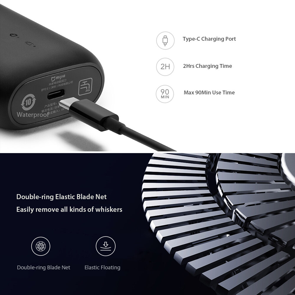 Xiaomi Mijia Electric Shaver 2 Floating Head Waterproof Wet Dry Razor Double Ring Blade USB Rechargeable Shaving Machine For Men