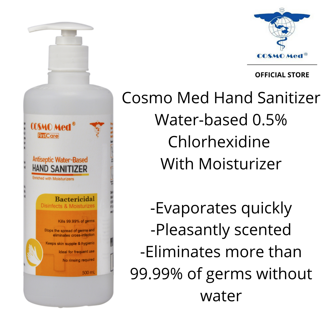 Cosmo Med Hand Sanitizer Water-based 0.5% Chlorhexidine With Moisturizer 500ml (With Pump)- For Sensitive Skin