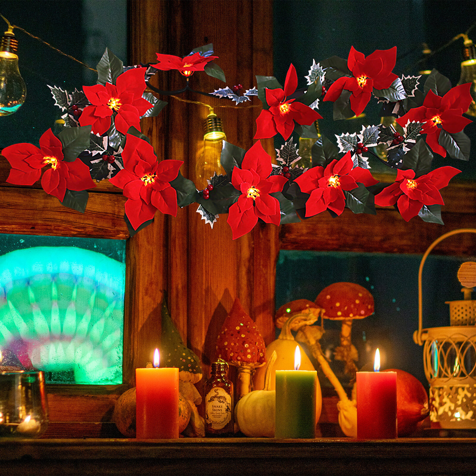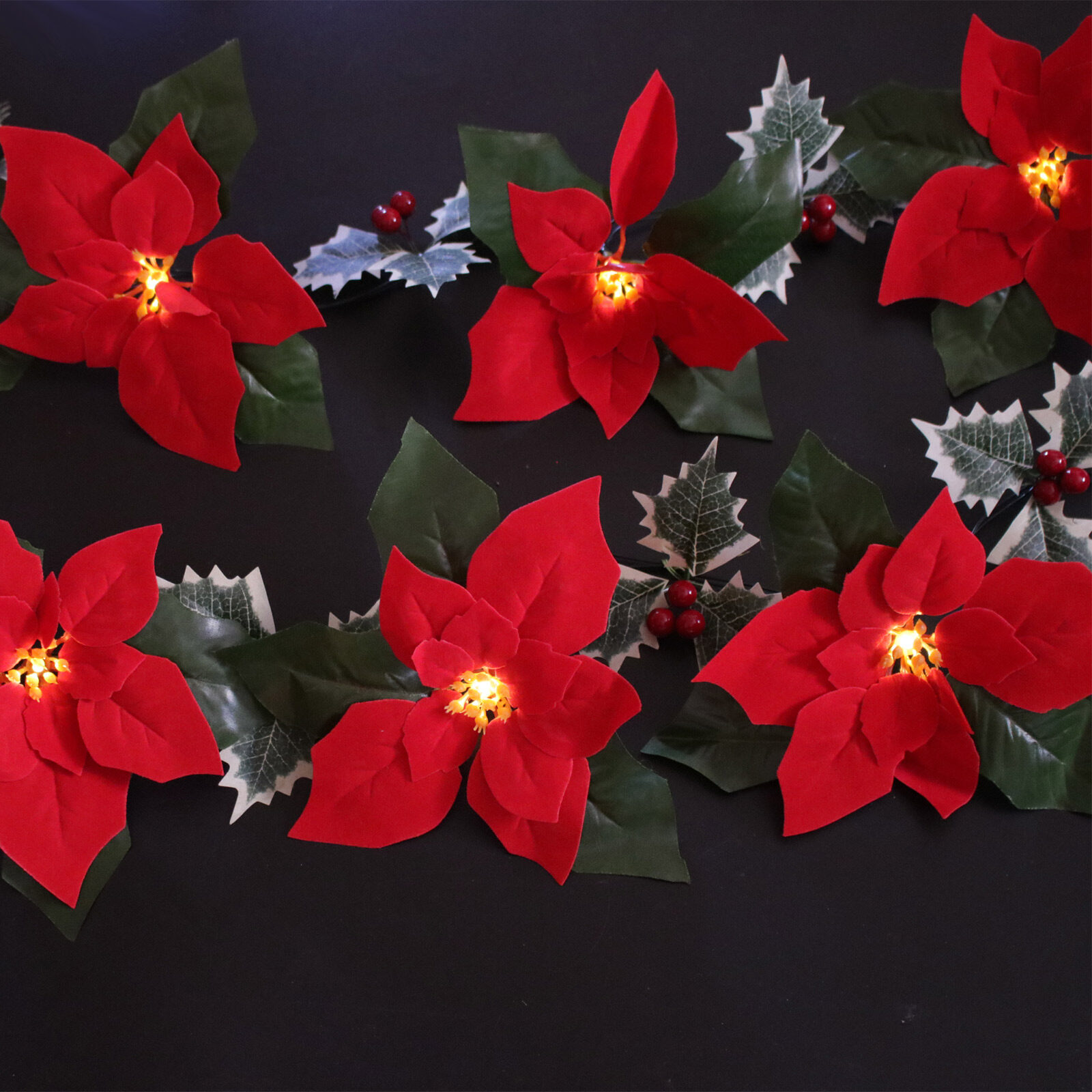 [Pantorastar] Simulation Flowers Holiday Lights Cable Tie With For Christmas Tree Home Decoration 2 Meters Flannelette Poinsettia String