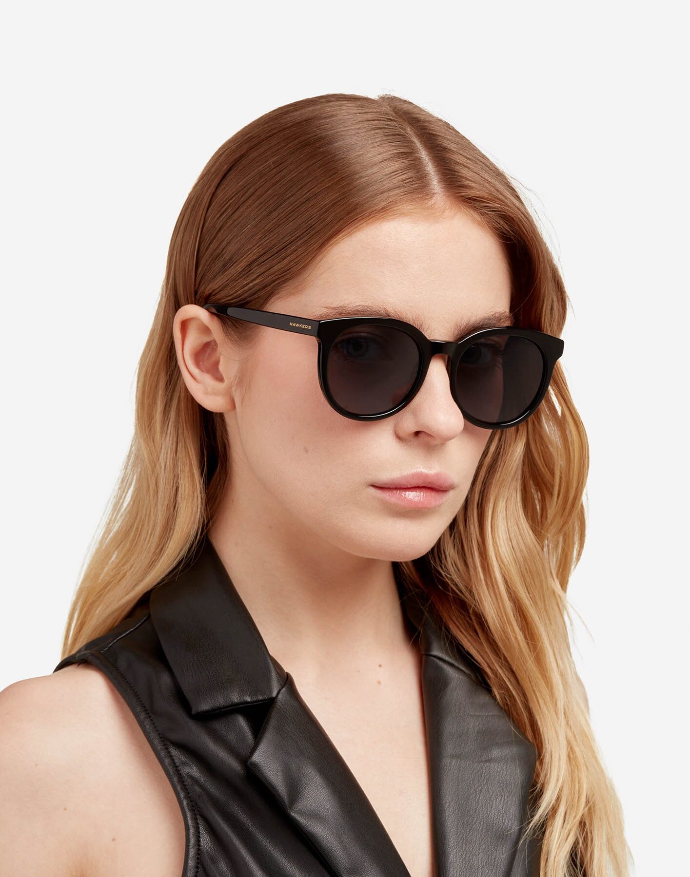 The Black lenses of this model complement the dark black print of the frame. Inspired by classic 1960s panto designs, the end pieces are placed marginally higher for a pseudo cat eye effect. No Gender Model Lenses of Eastman ??TR18, one of the World leaders in copolyester technology. Respects the environment and gives a unique balance between clarity and resistance Category 3 lenses with UV400 protection High-quality cellulose acetate frame for maximum resistance and durability Acetate nose pads for a more comfortable grip 5 barrel hinge for improved grip and durability Wider design of the earpiece for better ergonomics and comfort Stainless steel pyramidic trim to soften and structure the join between temple and earpiece for a more elegant finish Size: Front 13,8 cm; Height 5,19 cm; Lens diameter 5,2 cm; Bridge 1,9 cm; Temples 14 cm Includes: Microfiber cover, box and set decorative stickers