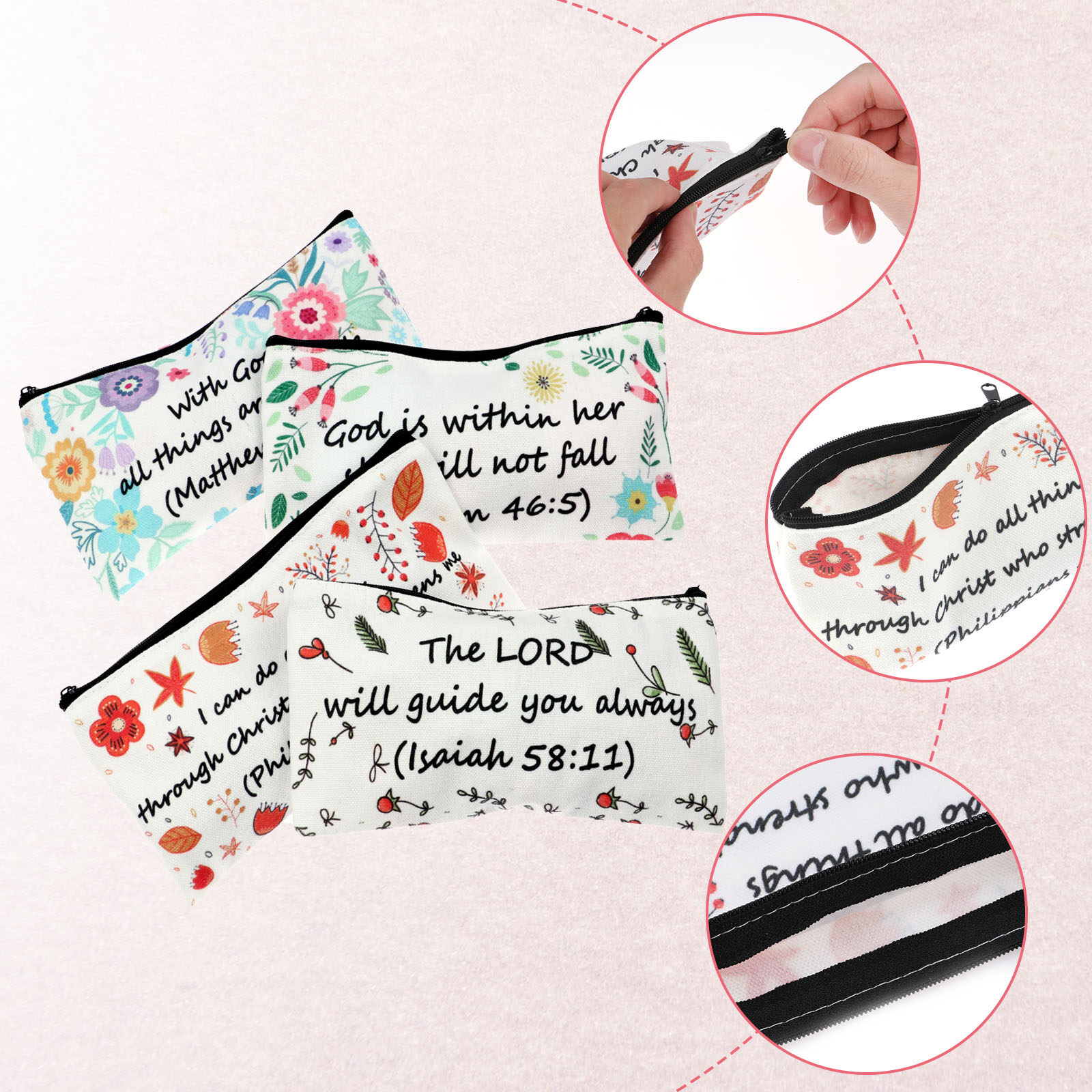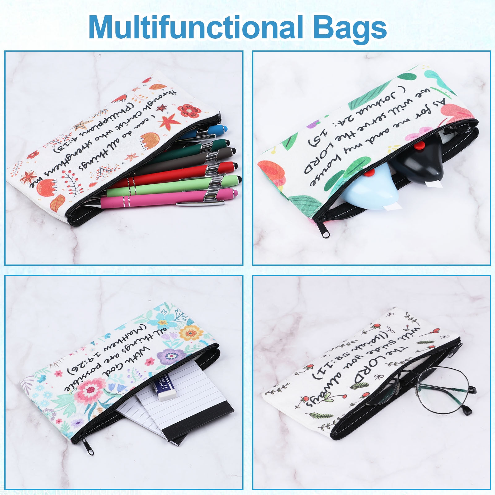 High Quality Material: These bible verse pen bags are made of quality canvas, durable and reliable, won't wear or fade easily, convenient to clean and air dry. Soft, smooth, skin-friendly, good quality, durable and reusable. Hand washable, machine washable. It can be folded up for storage when not used.