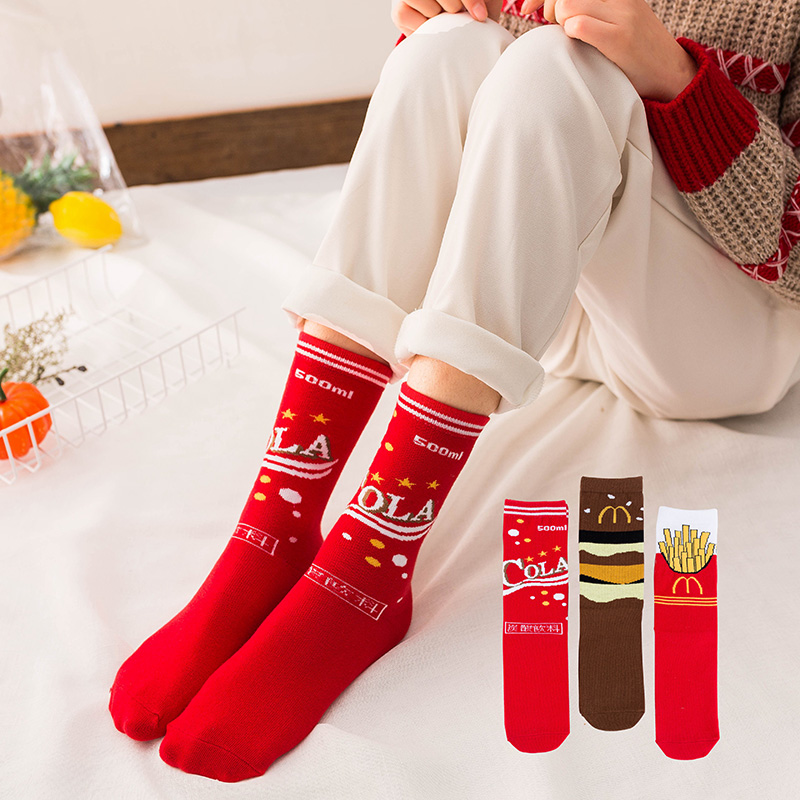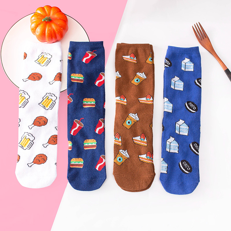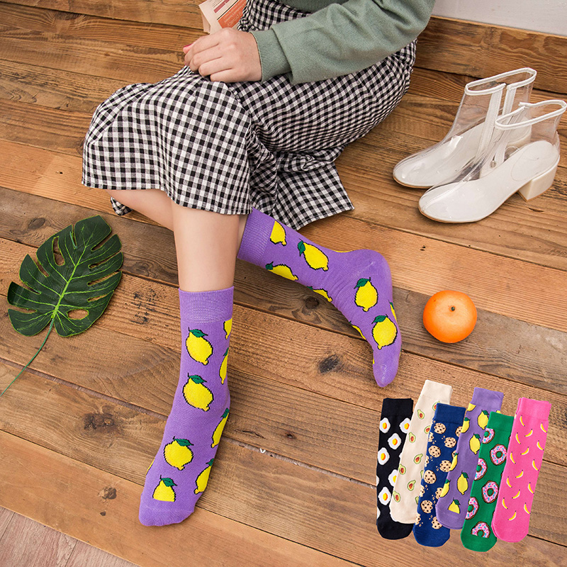 Funny Cartoon Fruits Food Women Crew Socks New Trend Cute Egg Cookie Donut Happy Colorful Novelty Skateboard Female Cotton Long Socks