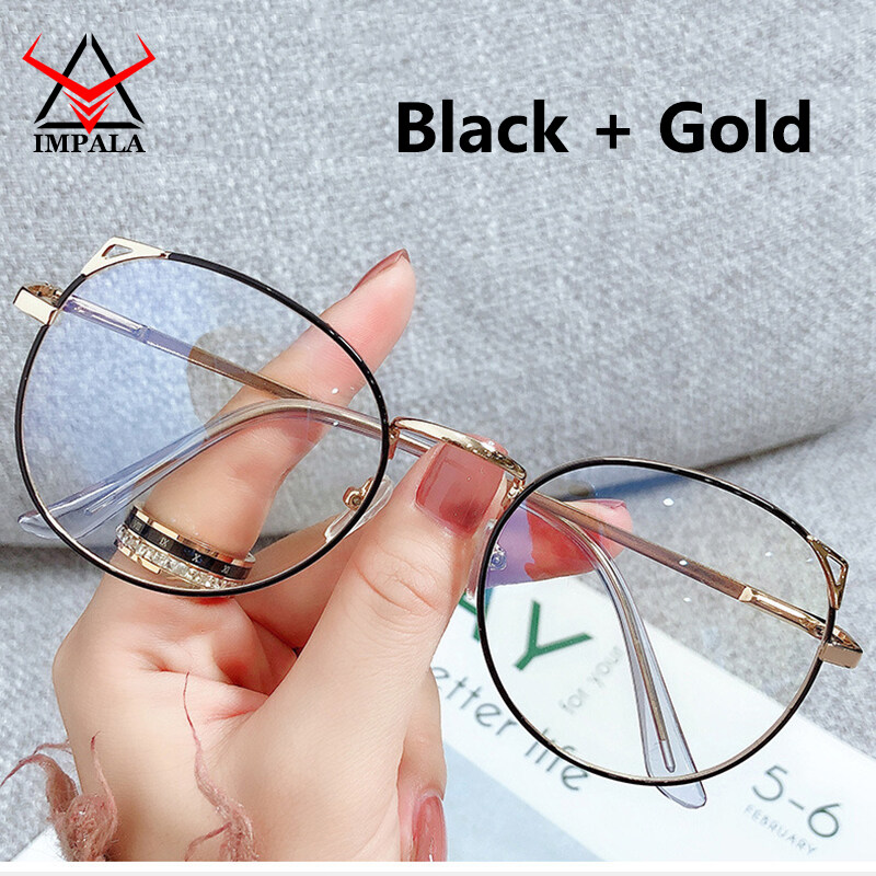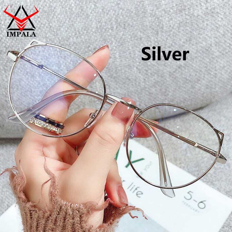 IMPALA FL1617W Cute Cat Ear Anti Blue Glasses for Girl Korean Style Anti Fatigue Eyewear Women UV400 Filter Resin HD Lens Glasses Protect Eyes