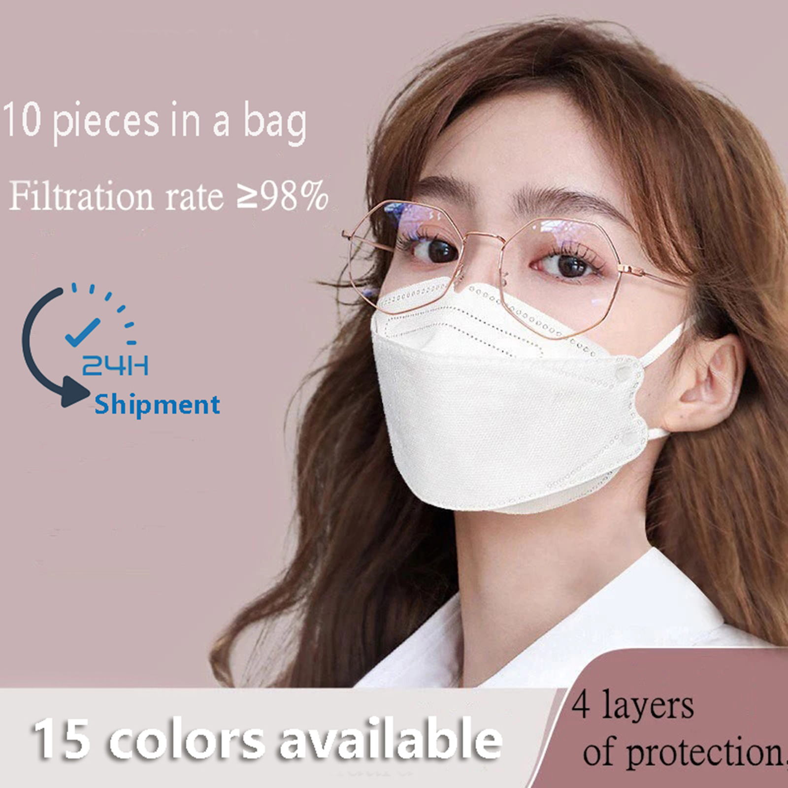 [EnidJuli] 10PCS Aldult KF94 Mask Face Shield 4 layer Design New Mixed Colors Design Reusable Washable Face Mask