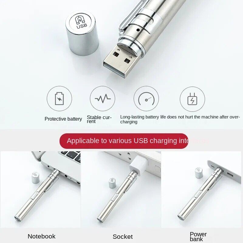 Scope of application: medical pen light, white light color clear for otolaryngology, sore mouth examination. The yellow light color is suitable for ophthalmology. Portable pen holder for easy carrying.