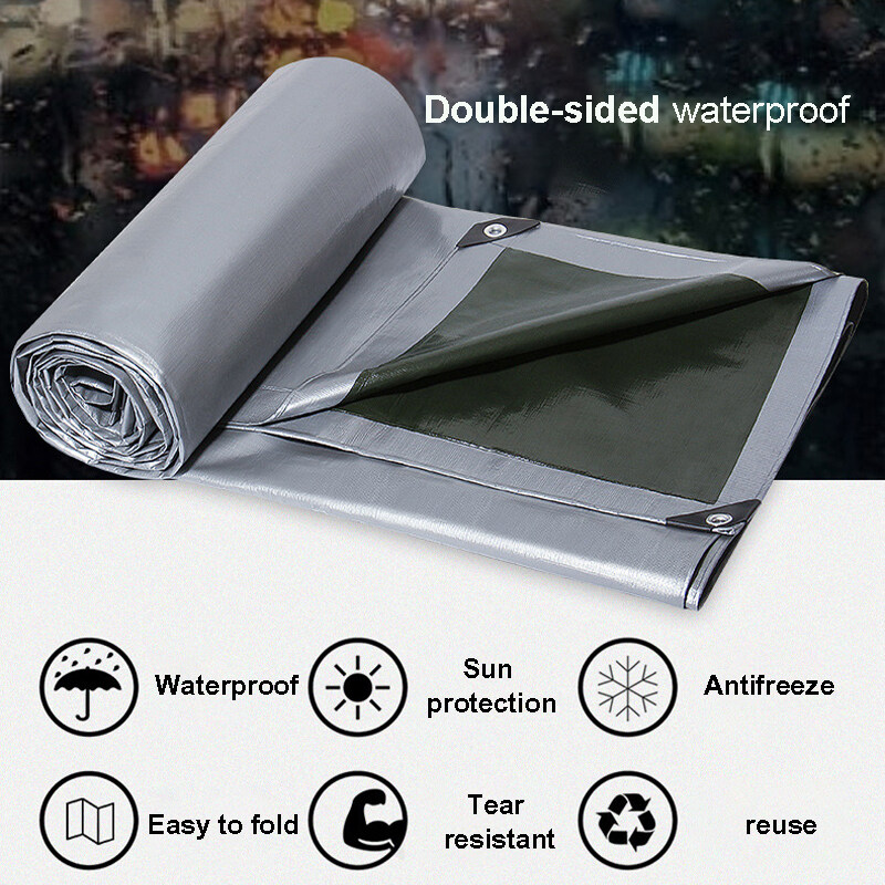- Qualified Material - Made of 100% brand-new PE material and coated lamination for double-sided use,for resisting sunlight in sunny day, and maintaining heat in cold day, both side for waterproofing, UV resistance & not easy to get black stains in wet weather.