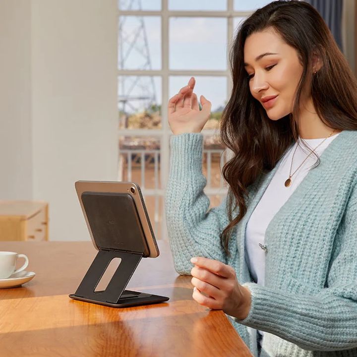 A foldaway magnetic stand turns your iPad into a mobile monitor, a video call tool, or an e-reader, whenever duty calls, and folds flat in your pocket.