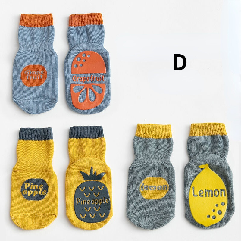 3 Pairs Kids Floor Socks Baby Newborn Infant Anti Slip Sock Breathable Indoor Toddler Socks Cute Fruit Children Socks