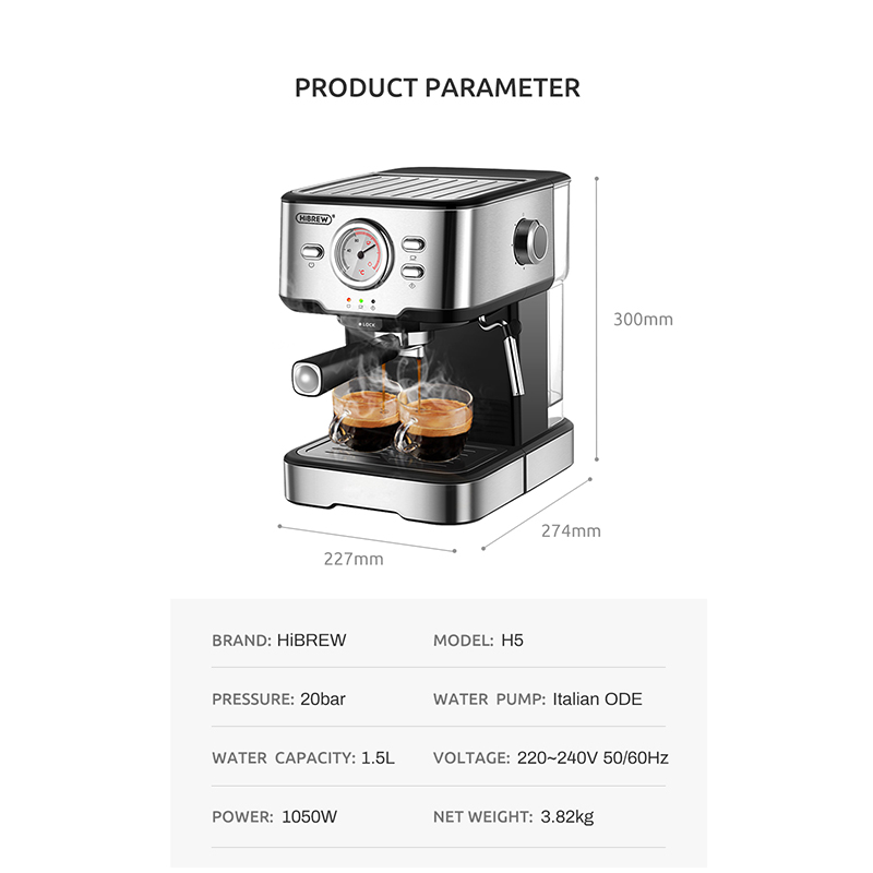 ✔【20 BAR PRESSURE SYSTEM】20 Bar high-pressure Italian ODM pump with 1050W big power can provide fast and stable extraction,makes espresso more fragrant and rich in crema.