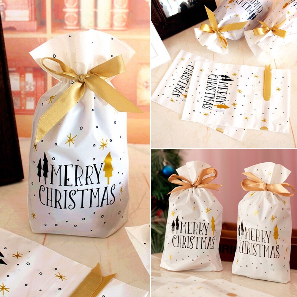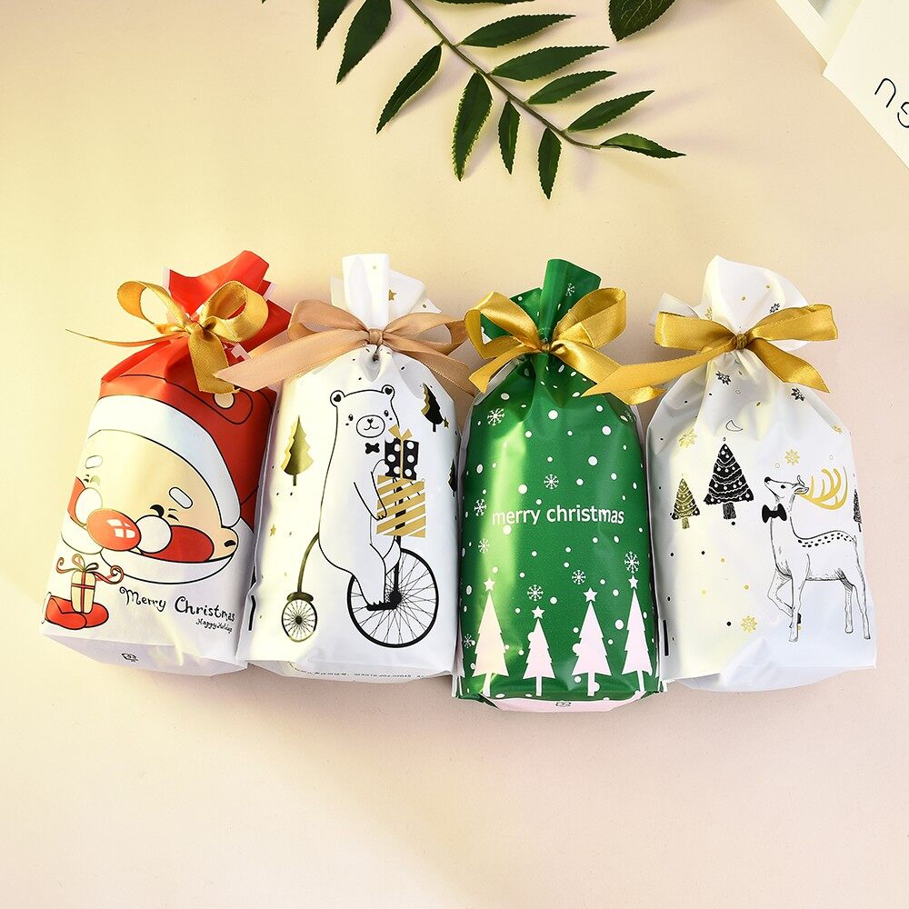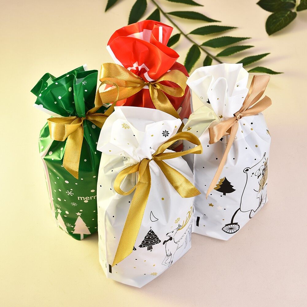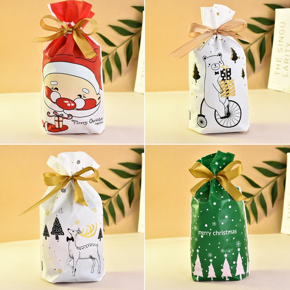 [YOY] 10PCS/Set Christmas Drawstring Gift lacing Bags Reusable Wrap Bags Cookies Candy Pouch