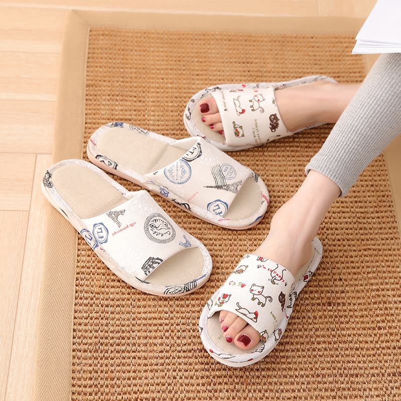 【SG Seller】Women Men Couple Anti-Slip Cotton and Linen Soft Bottom Slipper Home Indoor Slippers Summer Open Toe Flip Flops Home Wood Floor Sandals
