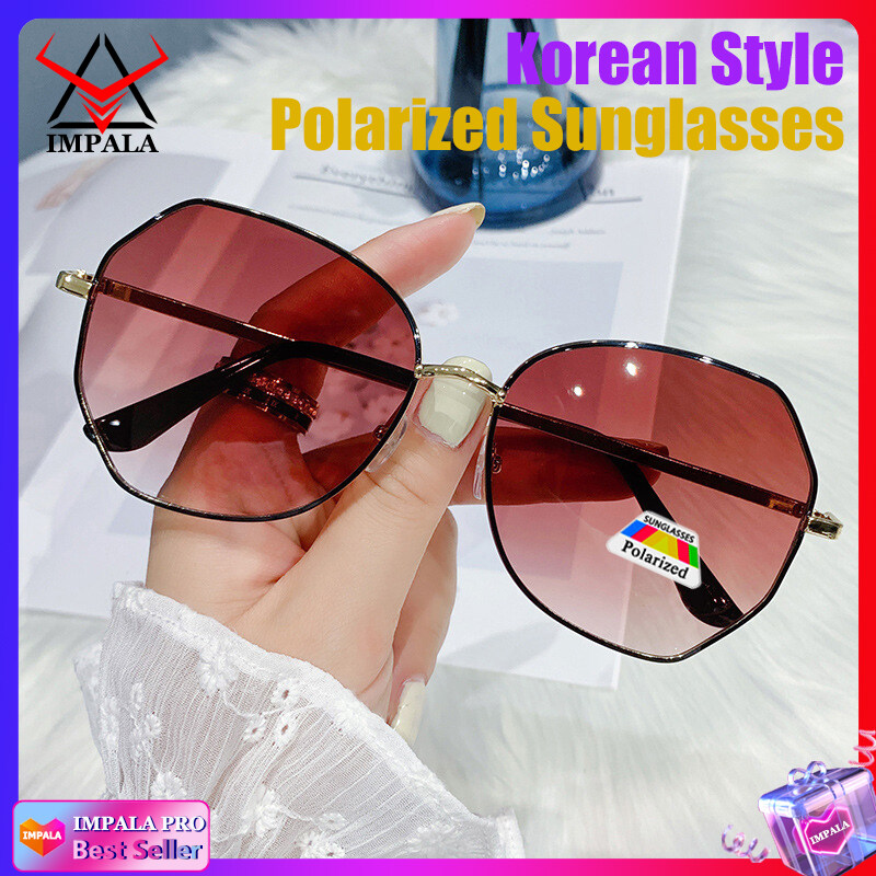 IMPALA PG1638W Fashion Sunglasses for Women Korean Style Polarized Sunglasses Anti Glare UV Protection Driving Eyewear Resin HD Lens Metal Frame Lady Sun Glasses