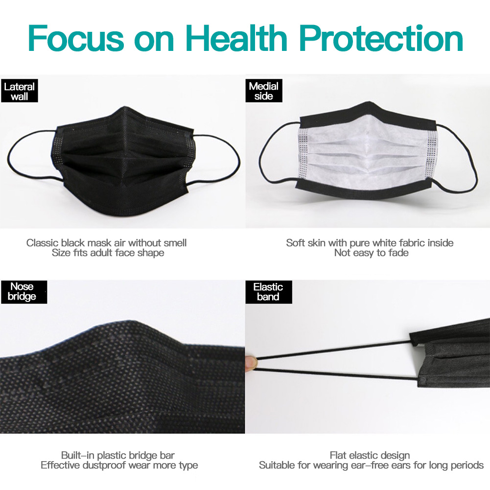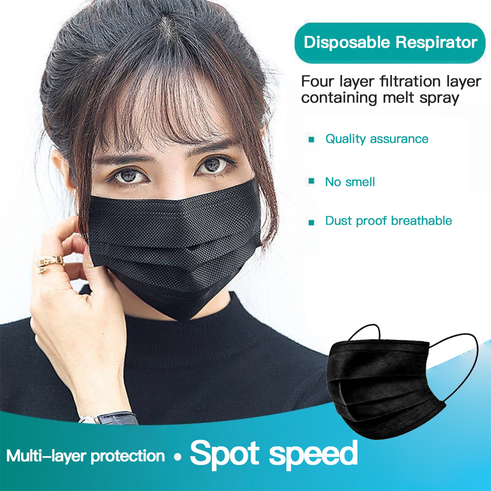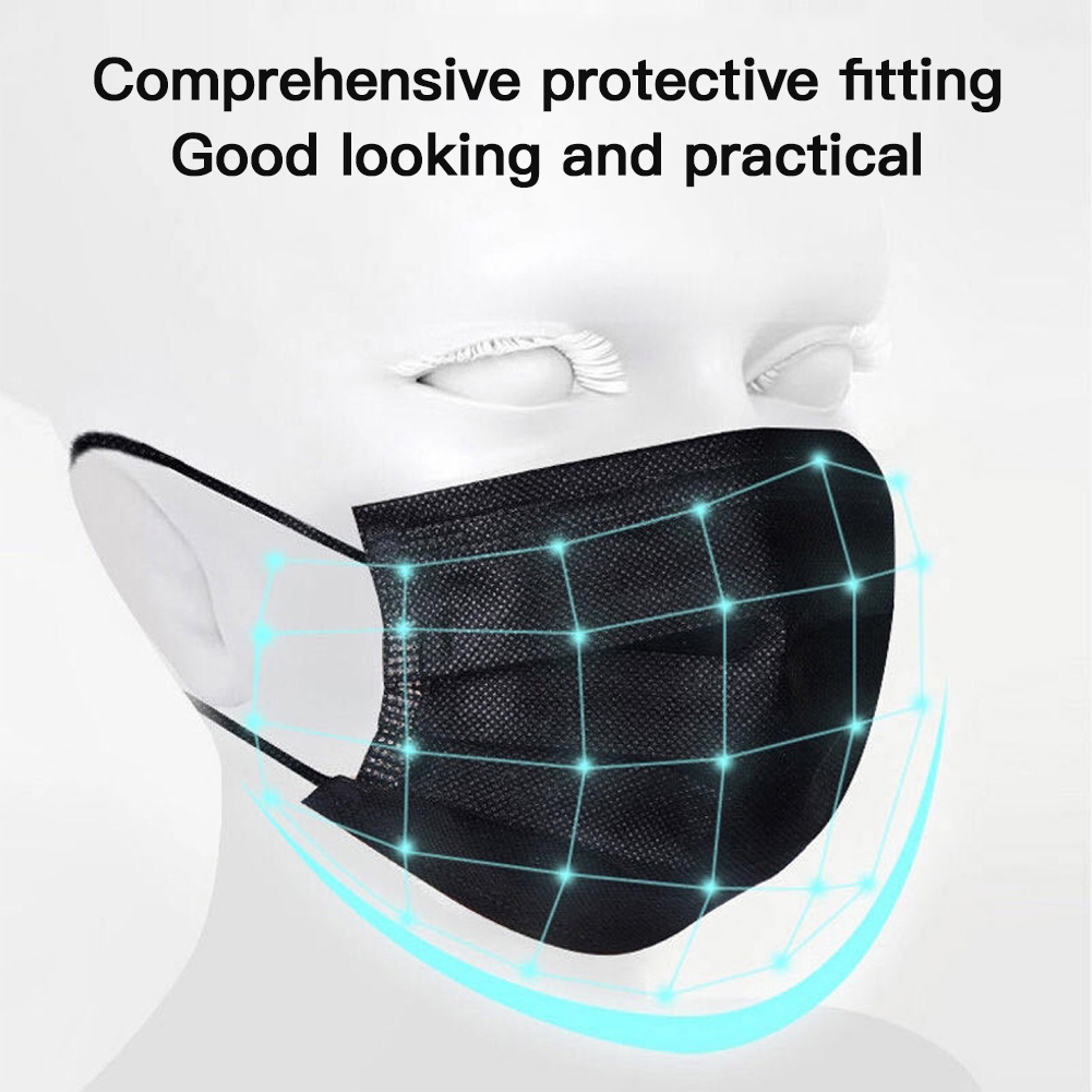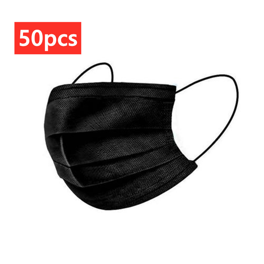 Supersto [Fast Delivery] 50pcs Black 3ply Face Mask Disposable Mask Universal Breathable Dustproof Anti-foam with Meltblown Mask