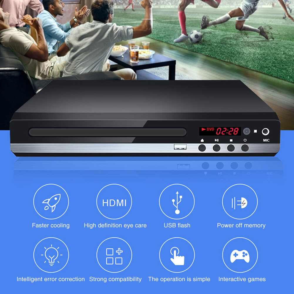 Karaoke For TV Remote Control Metal Home Portable Multi Format USB HDMI With Cable MIC Input VCD Easy Install DVD Player
