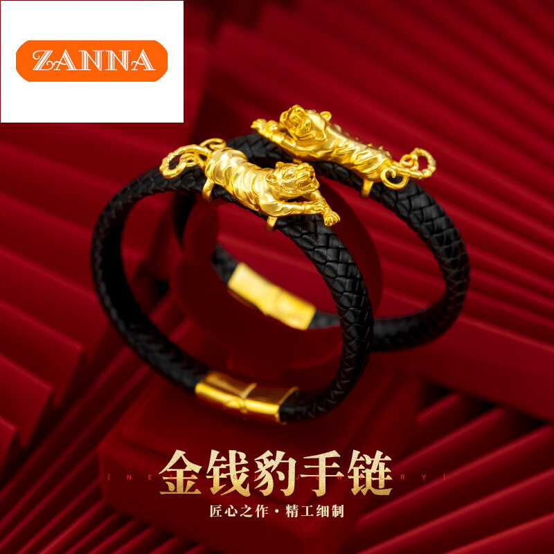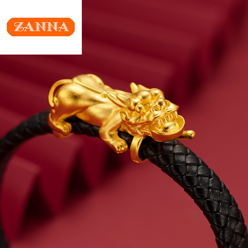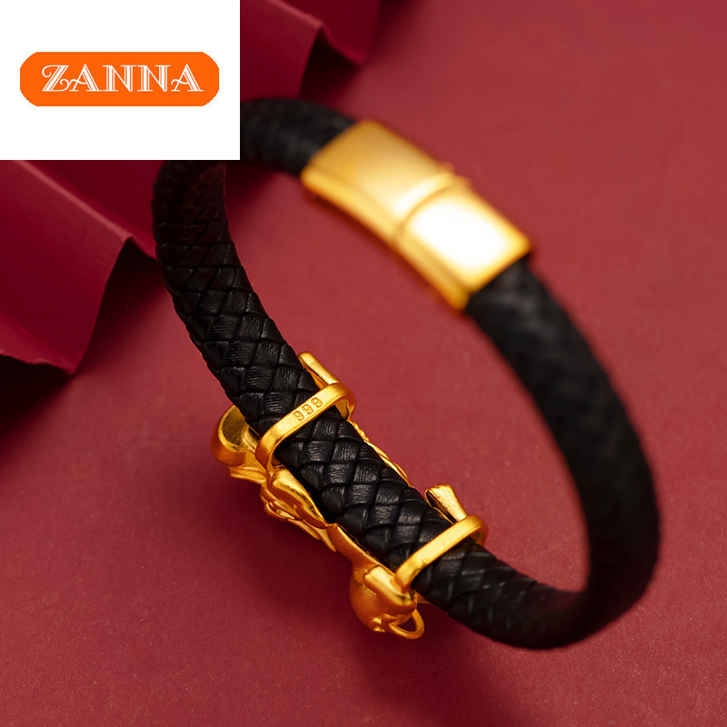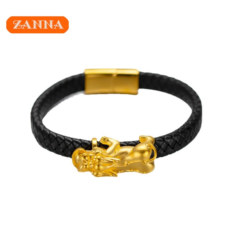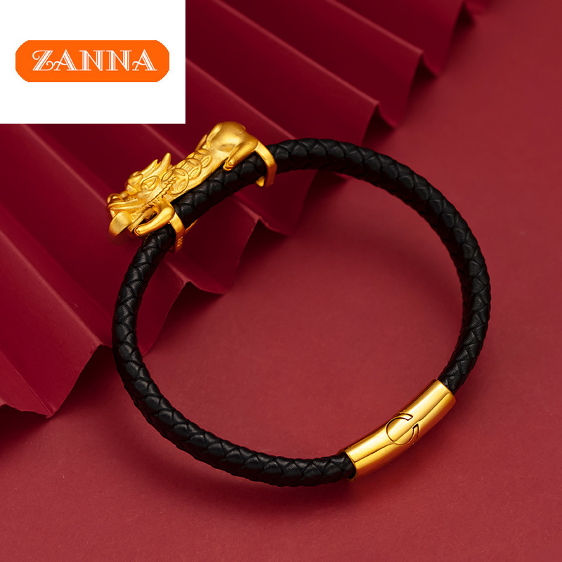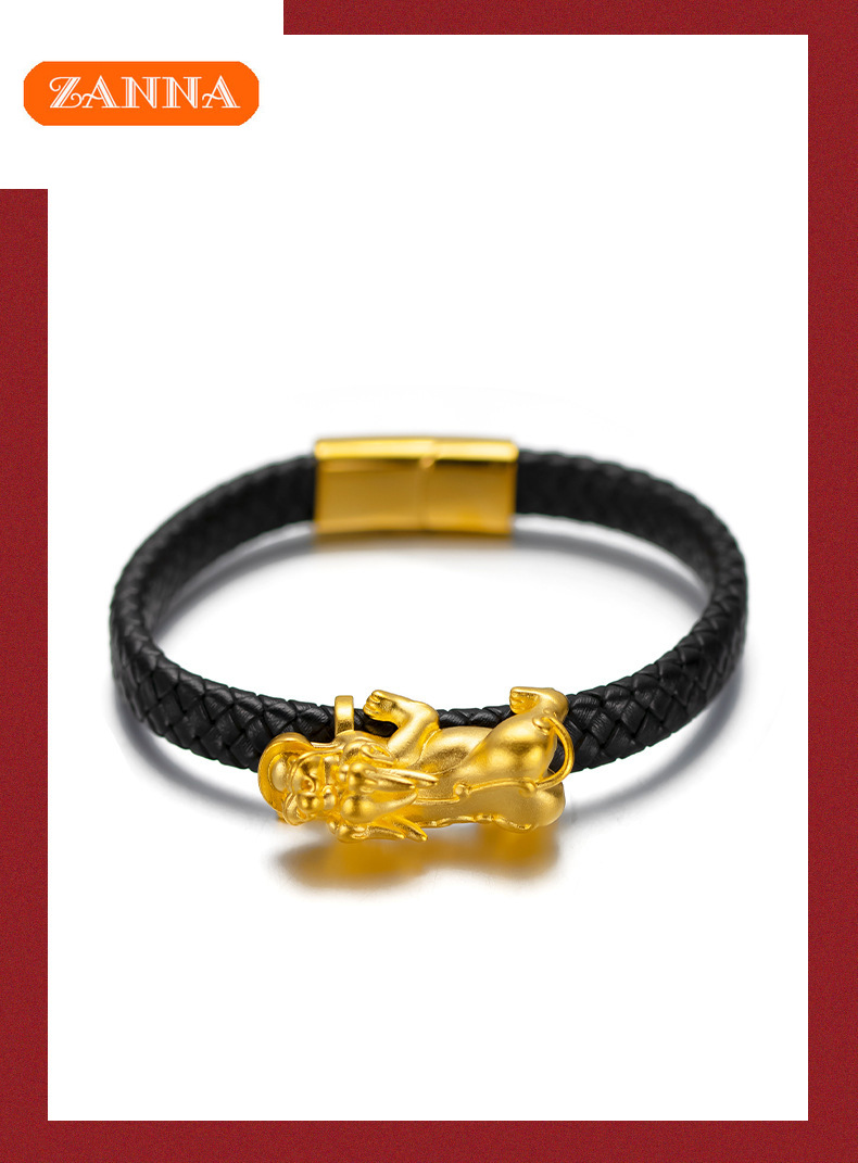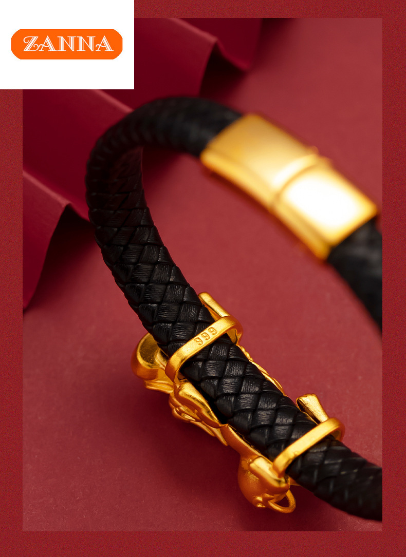 916 original gold version leather rope swallow gold Pixiu chain men's leather rope bracelet