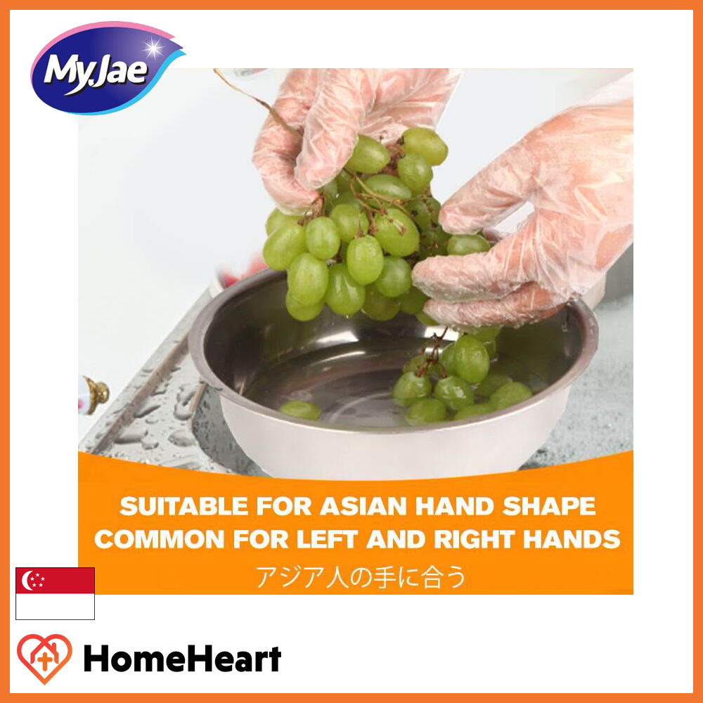 MyJae PE Disposable Gloves - (3 Pack, 300 Pieces) - Non Toxic, Thick, Leakproof With Ribbed Design For Added Friction