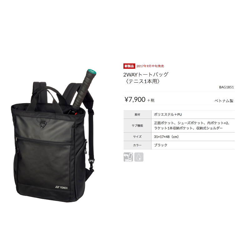 YONEXˉ [Japanese version] JP version BAG1851W badminton net bag backpack feather and authentic 3 pens
