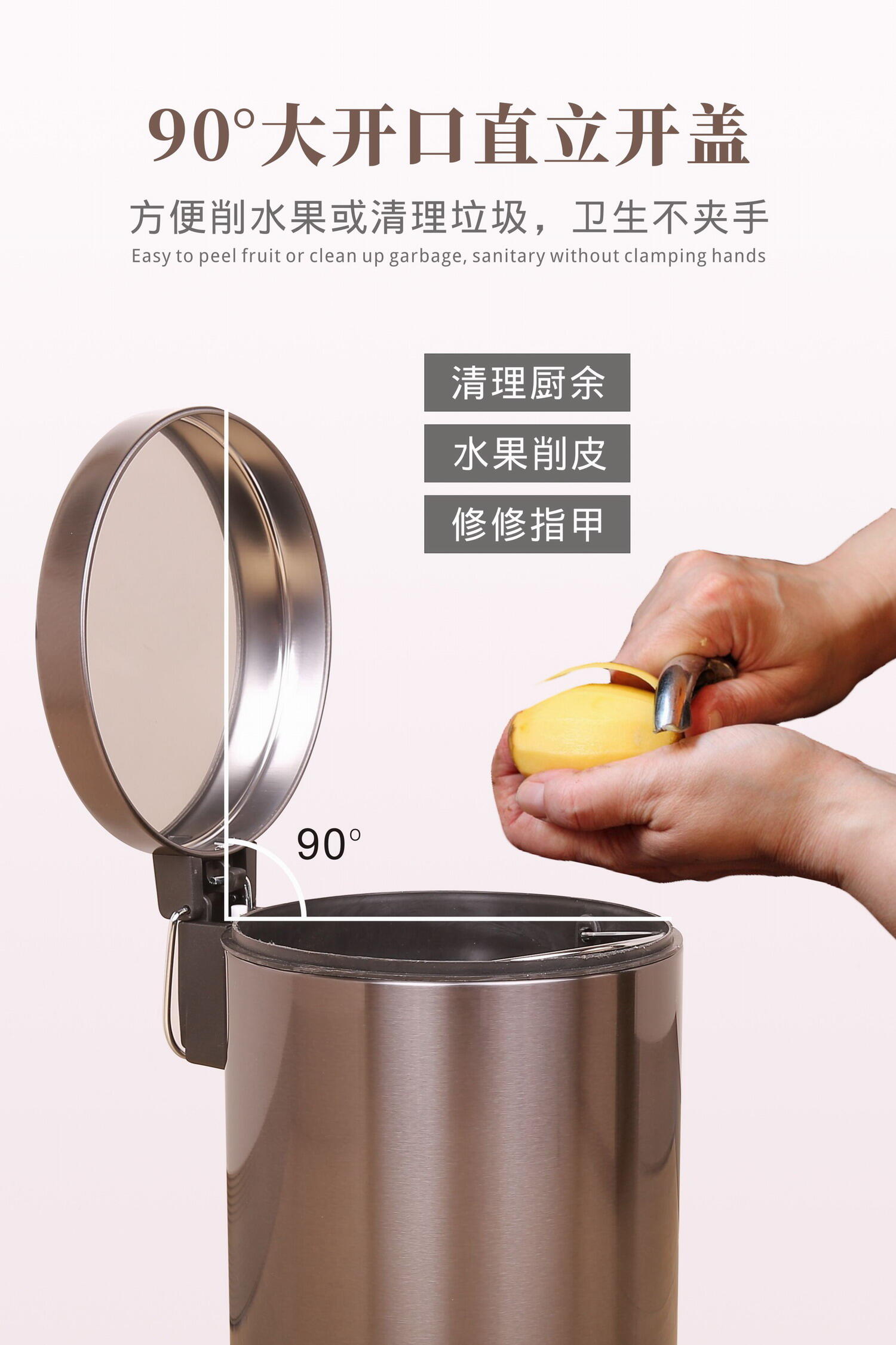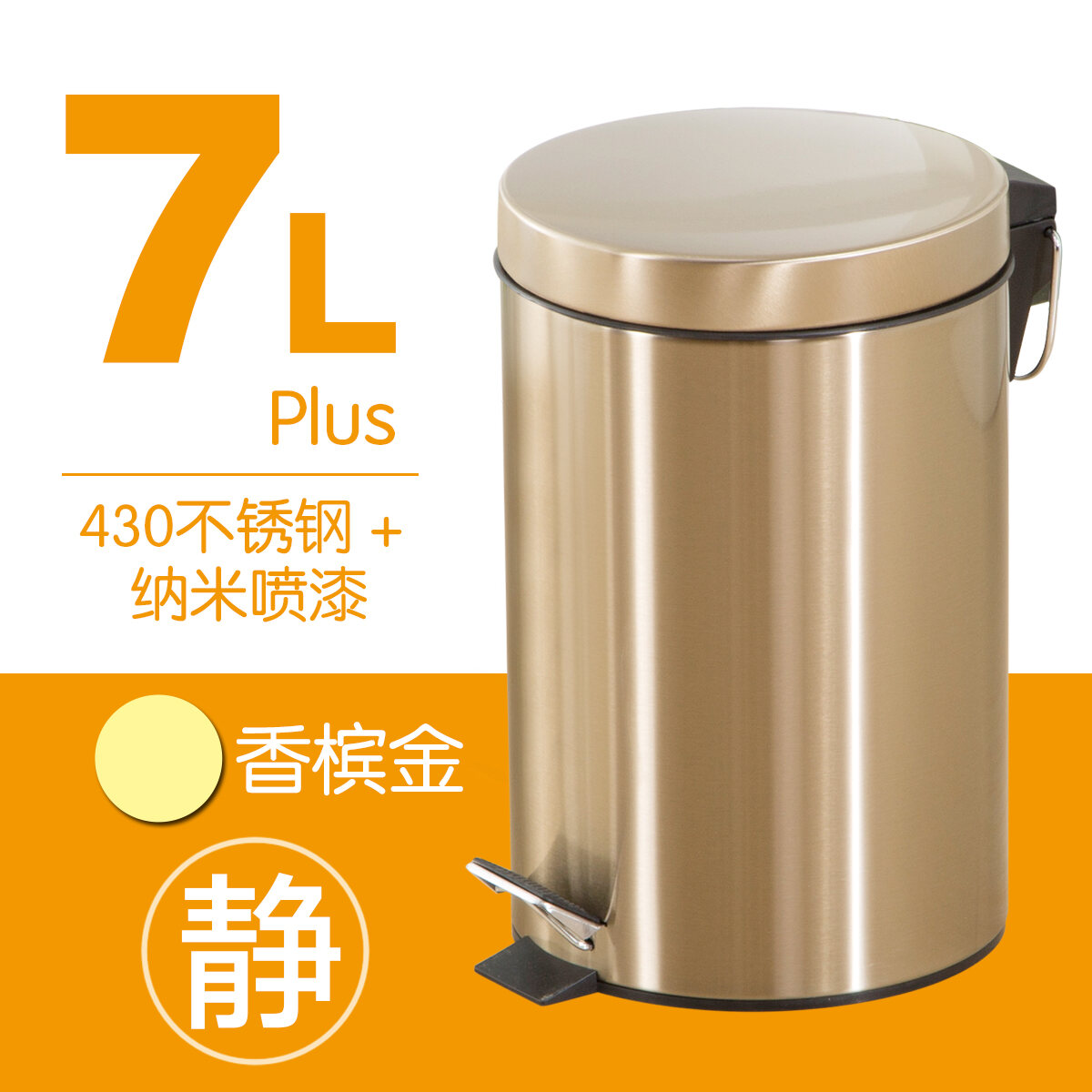 Trash Can Household Shanghai Wet and Dry Japanese Style Living Room Kitchen Stainless Steel Bathroom Pedal Trash Can Mute