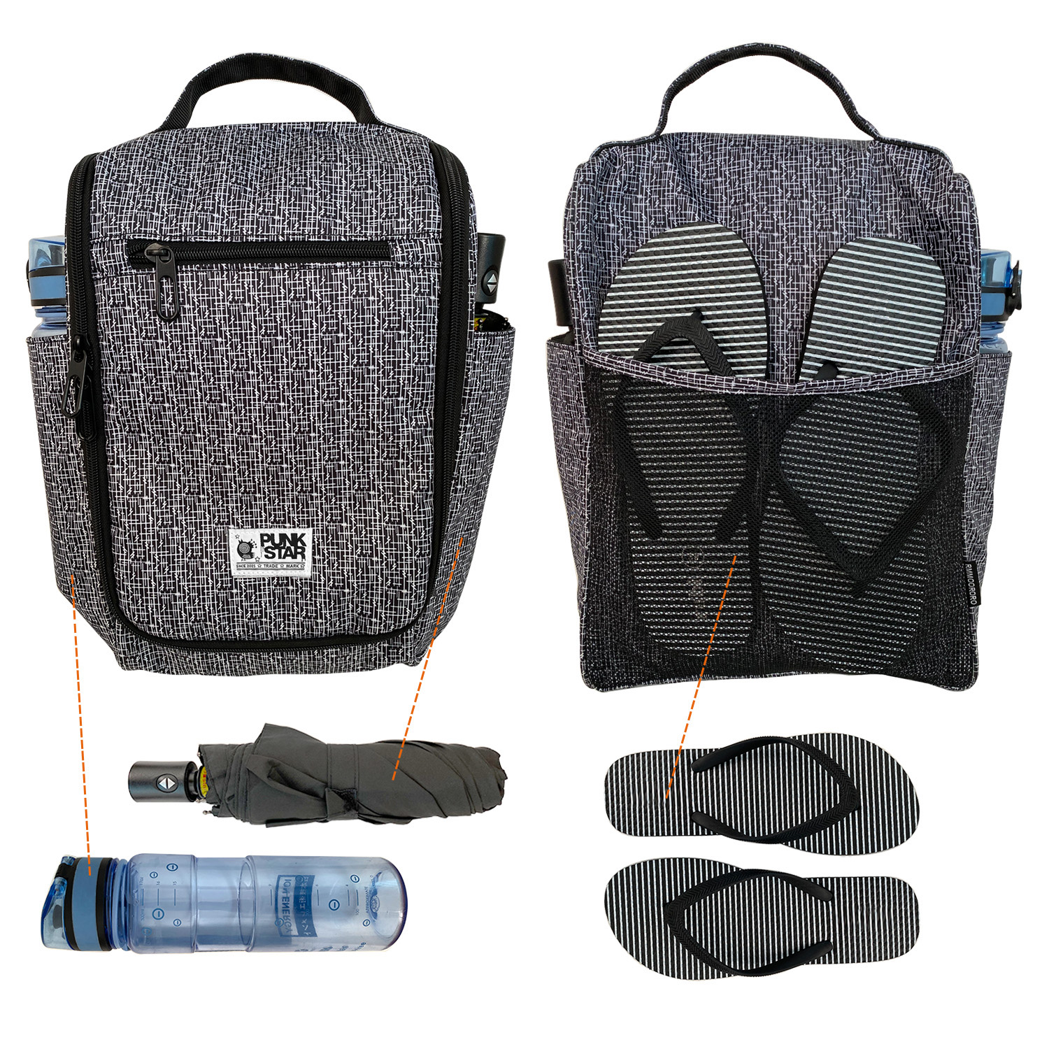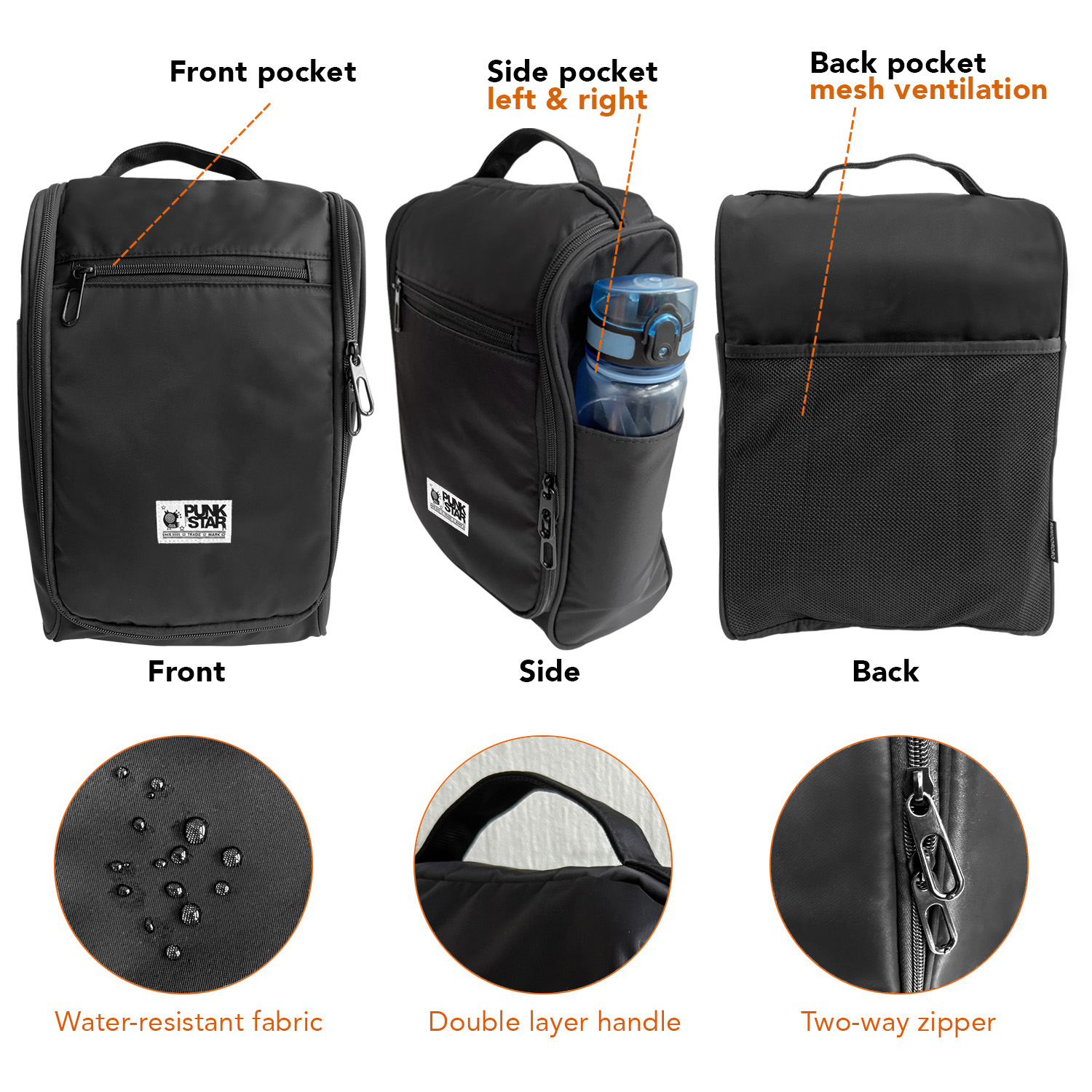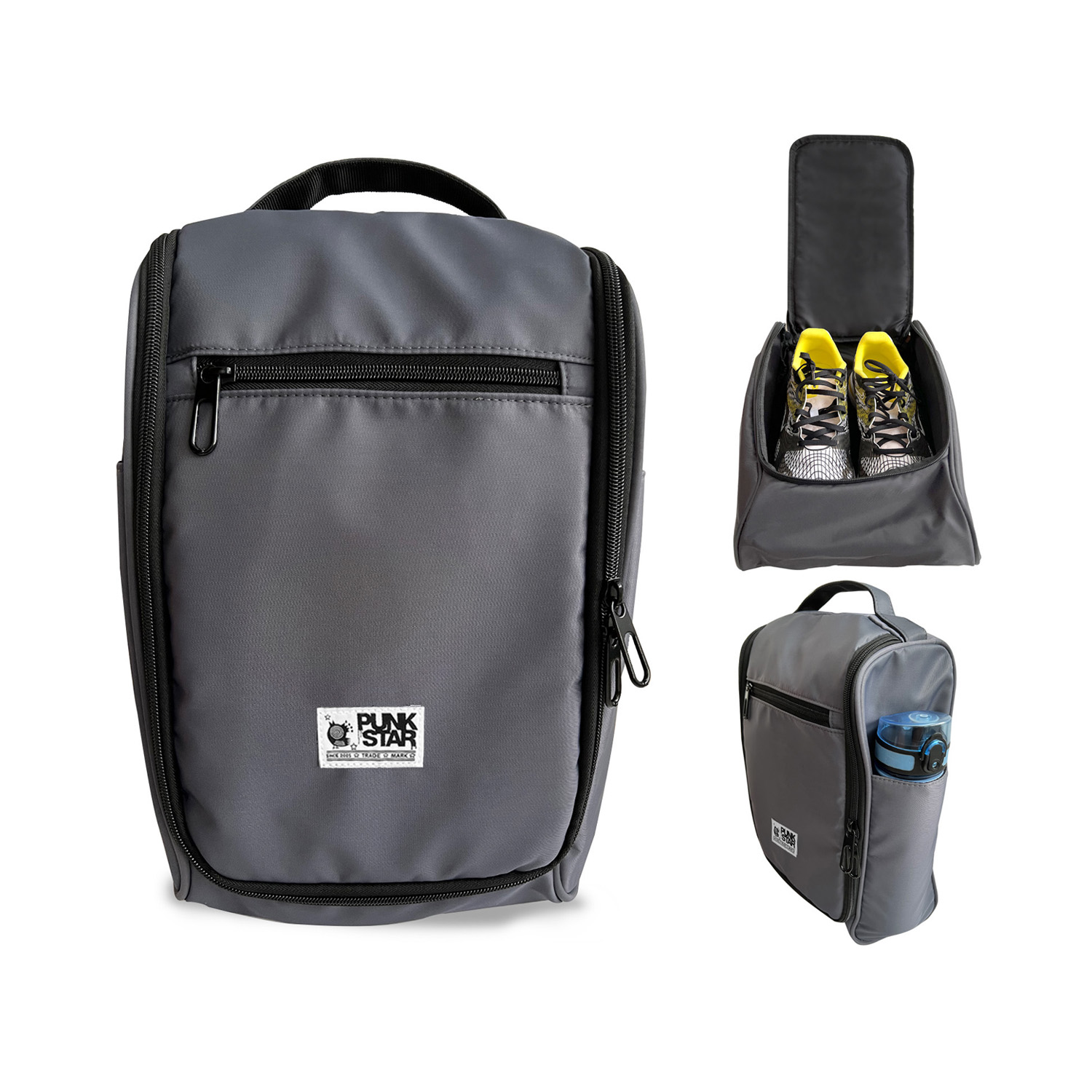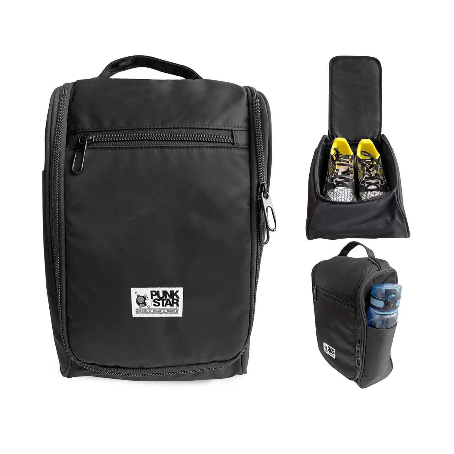 PUNKSTAR Shoe Bag is your ultimate choice for a shoe bag. It is light-weighted and water-resistant. There is front zipper compartment which is good for keeping small items such as keys, wallet, etc and a mesh pocket at the back for putting other items such as a pair of slipper, small towels etc. The main compartment of this shoe bag has a big capacity to accommodate a pair of sport shoes. This shoe bag also comes with good finishing such as smooth zippers and double layer handle to ensure durability for daily use.