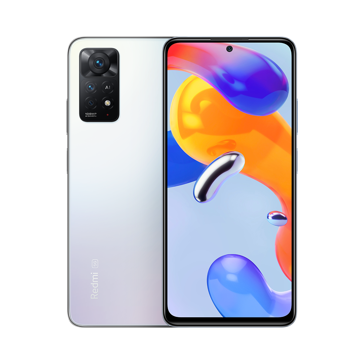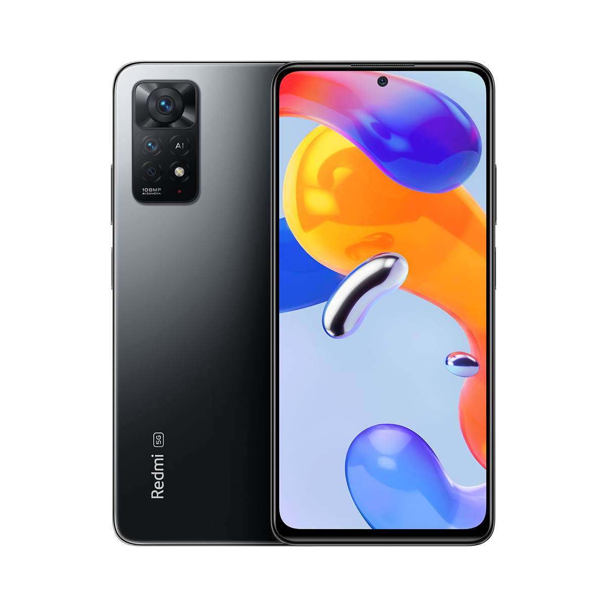 Redmi Note 11 Pro 5GCamera108MP+8MP+2MP Al triple rear camera108MP main cameraSamsung HM2- 0.7um, 9-in-1 binning into large 2.1 um pixel- 1/1.52" sensor size- f/1.9• 8MP ultra-wide cameraf/2.2, FOV 118°• 2MP macro camera- f/2.416MP front camera- f/2.4Display & Design• 6.67" FHD+ AMOLED DotDisplay- Up to 120Hz refresh rate- Up to 360Hz touch sampling rate- Wide Color Gamut (supports DCI-P3)- Brightness: HBM 700 nits (typ),1200 nits peak brightness (typ)- Reading mode 3.0, Sunlight display- Contrast ratio: 4,500 000:7- Resolution: 2400 x 1080• Available colors: Graphite Gray,Polar White, Atlantic Blue• Dimensions: 164.19mm x 76.1 mm x8.12mm• Weight: 202g• Corning® Gorilla® Glass 5 front• IP53 Splash-proof tested **Performance• Snapdragon® 6956nm manufacturing process- CPU: Octa-core, up to 2.2GHz- GPU: Qualcomm® Adreng. 619• LiquidCool Technology• | PDDR4X + UFS 2.2 storage- 6GB+128GB, 8GB+128GB- Expandable storage up to 1TB• MIUI 13, based on Android 11Battery and Charging• 5,000mAh (typ) battery• 67W turbo charging• 67W in-box charger• USB-CConnectivity• SIM 1 + Hybrid (SIM or MicroSD)• Bands2G: GSM: 850 900 1800 1900MHz3G: WCDMA: 1/2/4/5/6/8/194G: LTE FDD:1/2/3/4/5/7/8/12/13/17/18/19/20/26/28/32/66- 4G: LTE TDD: 38/40/41- 5G: n1, n3, n5, n7, n8, n20, n28, n38n40, n41, 166, n77, n78***• Wireless Network- Wi-Fi Protocol: 802.11a/b/g/n/ac• Bluetooth 5.1• NFCIR BlasterSecurity• Side fingerprint sensor• Al Face UnlockAudio & Haptics• Dual speakers• 3.5mm headphone jack• 7-axis linear motor
