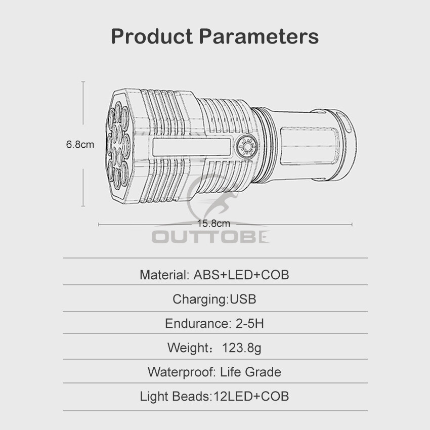 Outtobe Flashlight Mini Flashlight Bright LED Flashlight Waterproof Flashlight Outdoor Focusing Torchlight Portable Home Emergency Lamp Built-in Battery USB Rechargeable Torchlight Zoom-able focus Lig