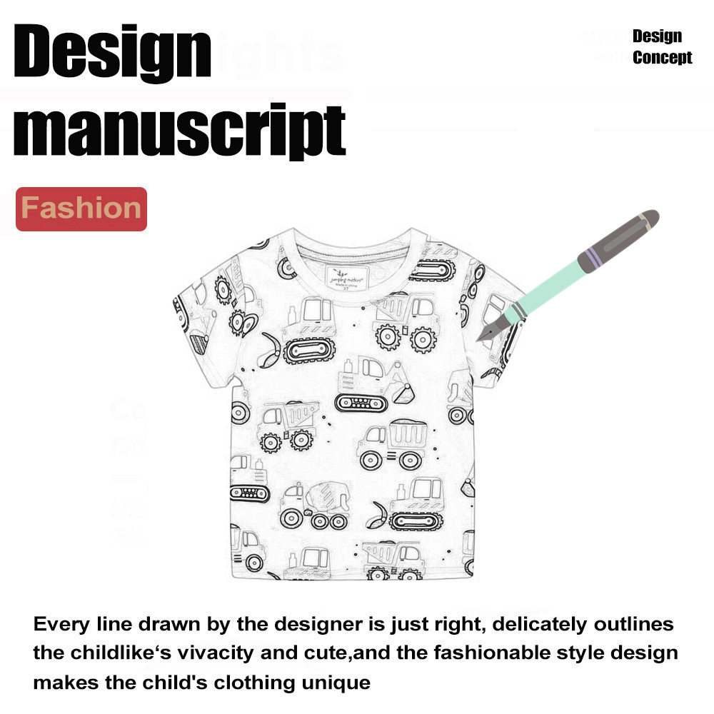 Summer New Arrival Kids Boys Tshirts Cartoon Excavator Bulldozer Prints Children T-shirts 1-7 Years