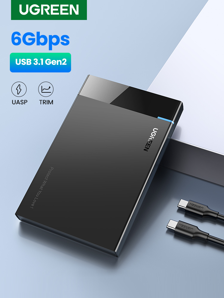 UGREEN External HDD SATA Case, USB 3.0 Enclosure for 2.5" 9.5mm 7mm SSD HDD SATA I / II / III UASP Supported Compatible with WD, Toshiba, Seagate, Samsung, Hitach (2.5 inch) - intl