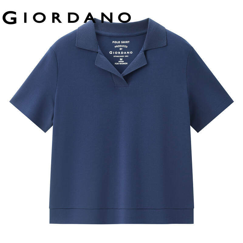GIORDANO Women Polo Shirts French Collar 100% Cotton Polo Shirts Short Sleeve Solid Color Simple Casual Polo Shirts 05312386