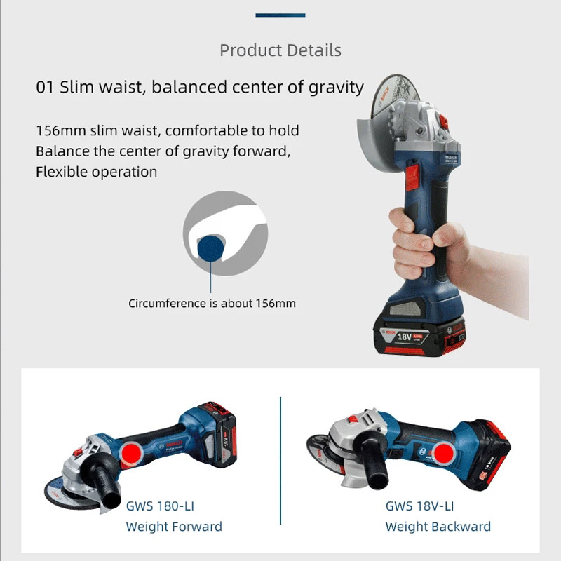 BOSCH Angle Grinder GWS 180-Li 18V Cordless Brushless Angle Grinder Cutting Polishing Machine