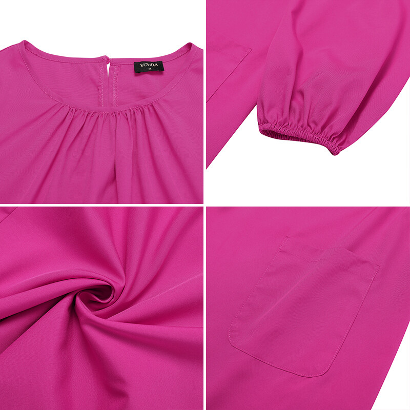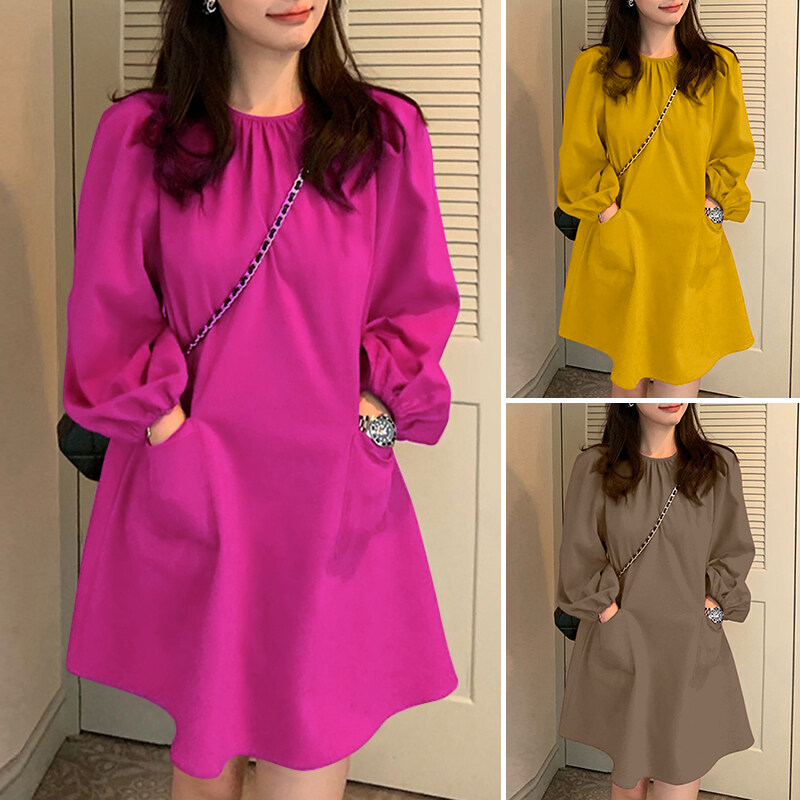 Features: Pleating,Pocket,Puff Sleeve