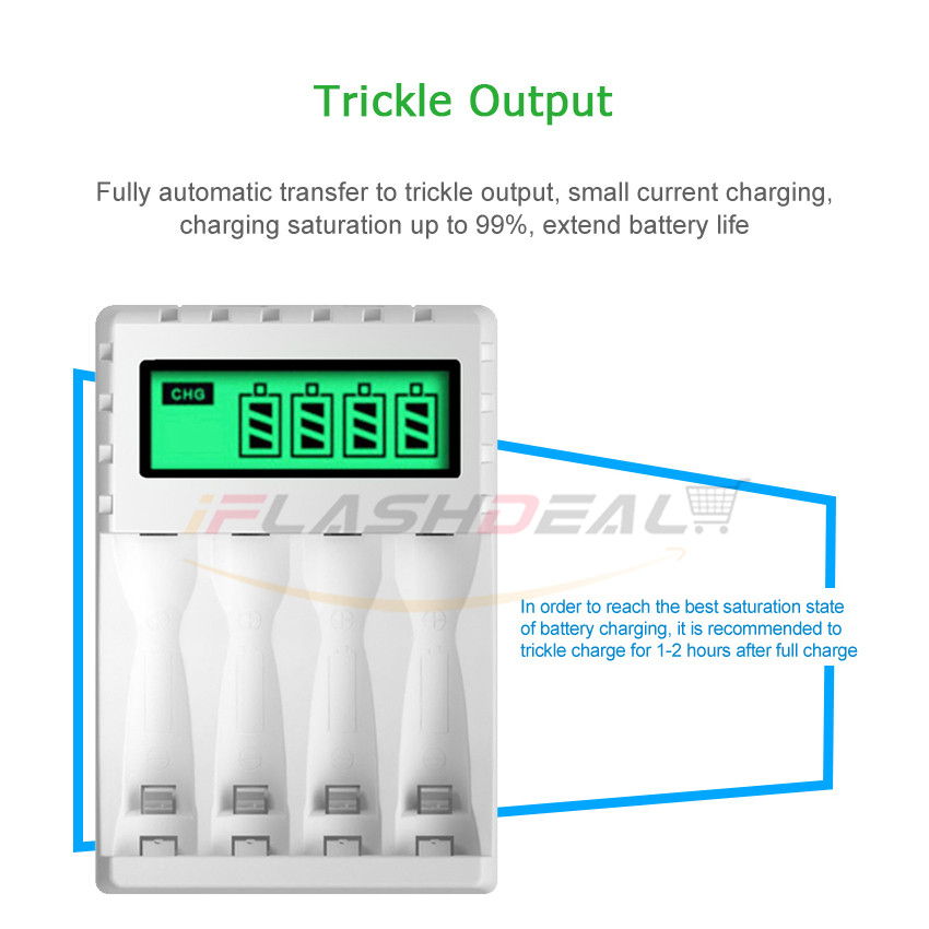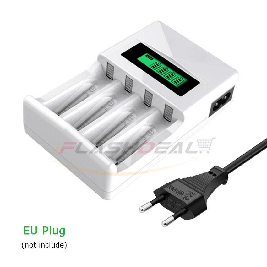 iFlashDeal Electric Battery Charger 4 Slots Intelligent LED Indicator USB Charger Home For AA/AAA Ni-MH/Ni-Cd Battery Charger Fast Intelligent 4 Slots LCD Battery Charger With USB Cable Portable Fast