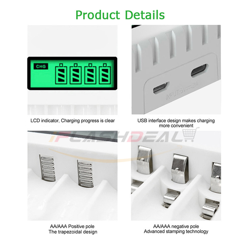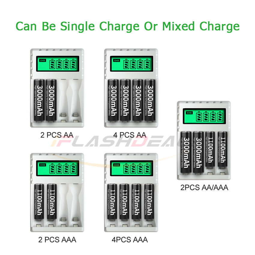 Can Be Single Charge / Mixed Charge: This charger can charge 1-4pcs AA/AAA Ni-MH/Ni-Cd rechargeable batteries, LCD displays.