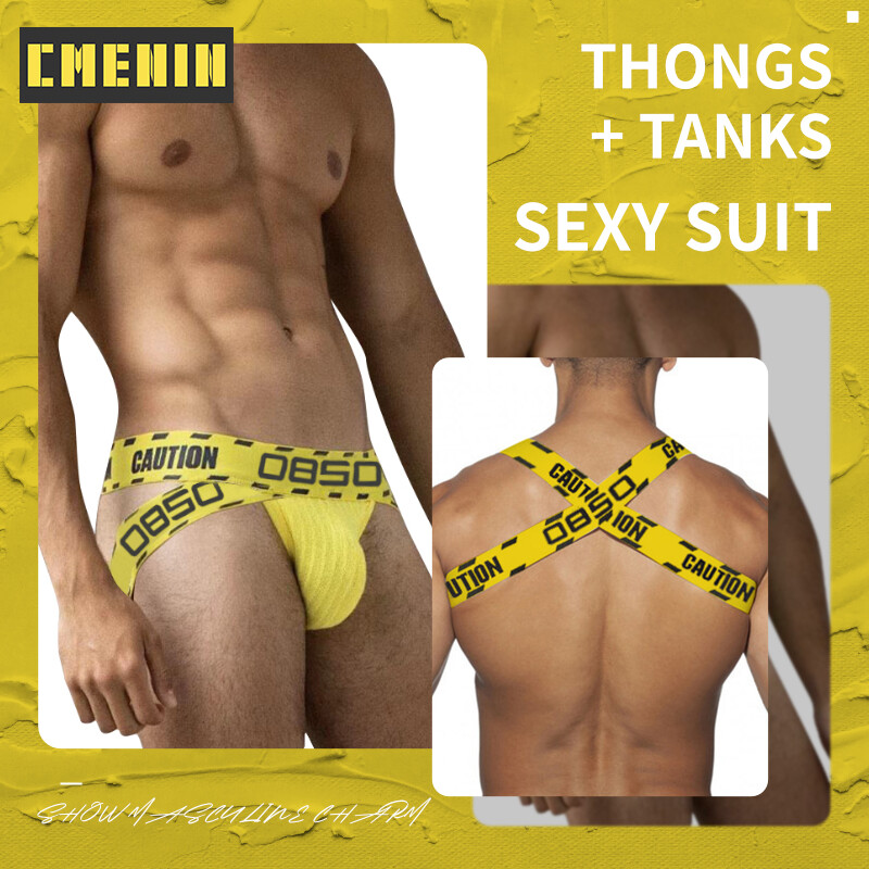 CMENIN Comfortable Sexy Men Underwear Jockstrap Panties Hot Cotton Tanga Men's Thong And Tank Top Set Man Underpants Mens Pouch BSTT6-10