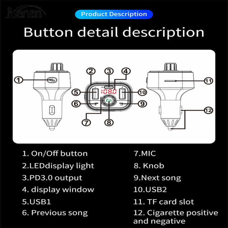 Bc62 Car Bluetooth-compatible Fm Transmitter Hands-free Calling Voice Assistant Atmosphere Light Voltage Detection Pd Fast Charger